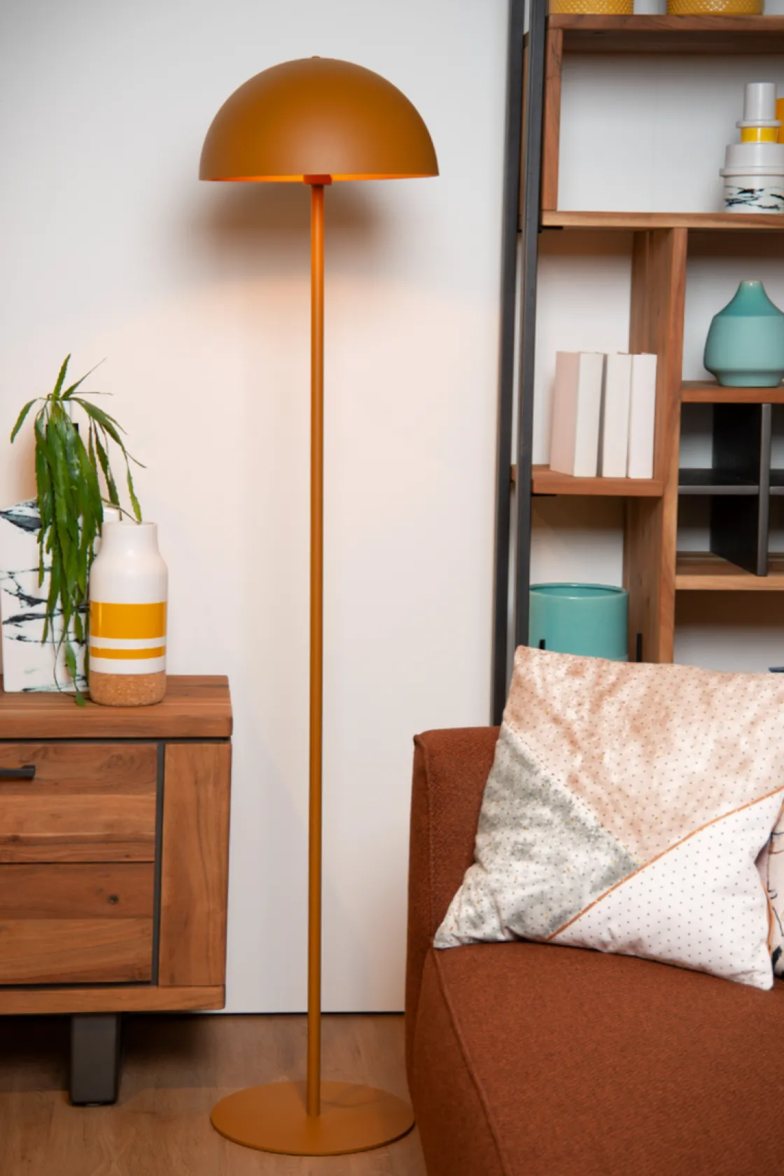Lekker og tidløs gulvlampe i orkerfarget metall med gullfarge på innsiden av skjermen.