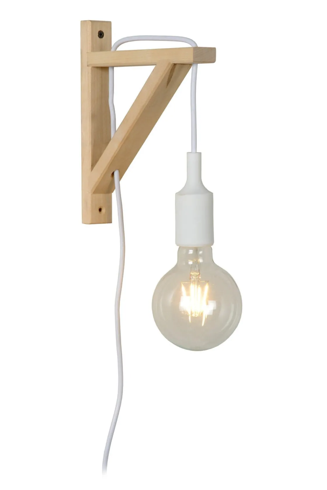 En kombinasjon av naturlig tre og skandinavisk design. Denne moderne vegglampen gir vakker belysning i det moderne interiøret. Du behøver en lyspære med E27-sokkel til lampen.