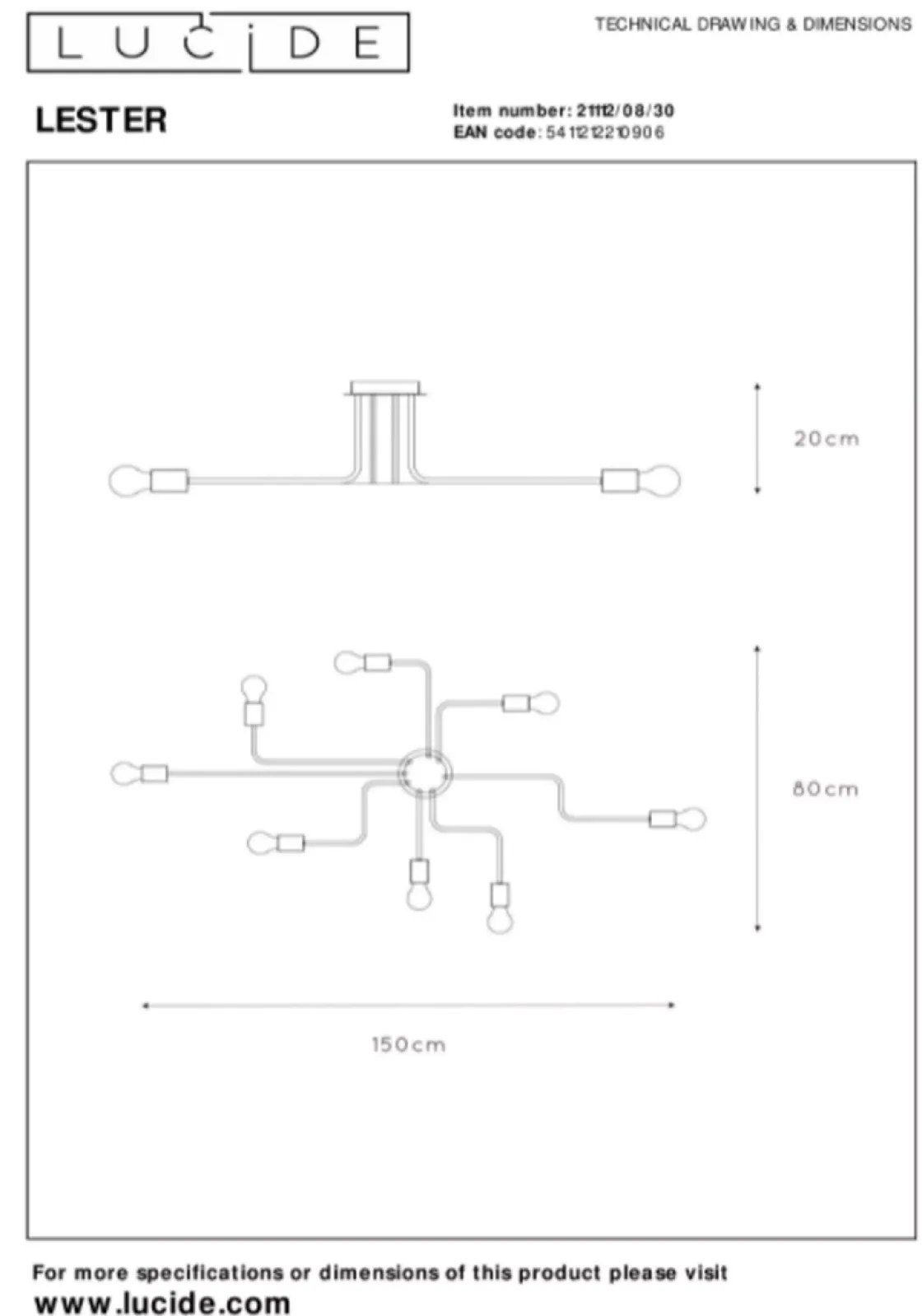 Lyser godt opp med sine 8 armer / lyspærer.