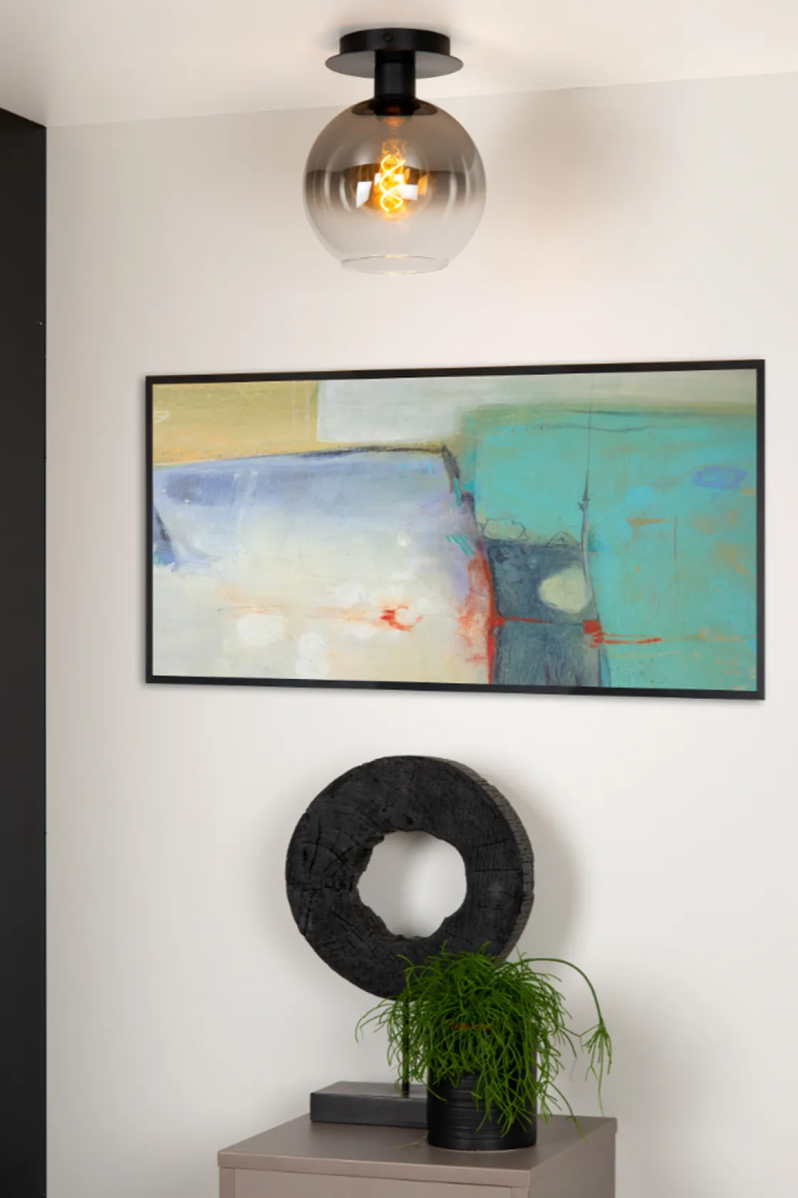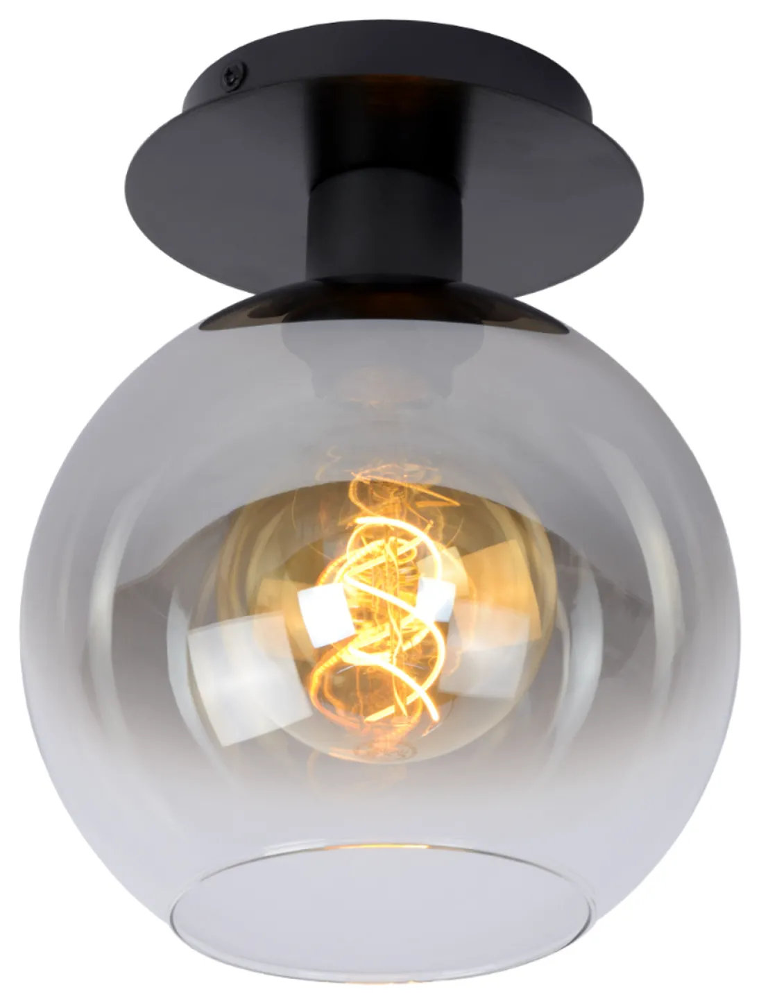Stilfull taklampe med glasskuppel i røykfarge, som kan dimmes ved bruk av dimbar lyspære og ekstern dimmer.