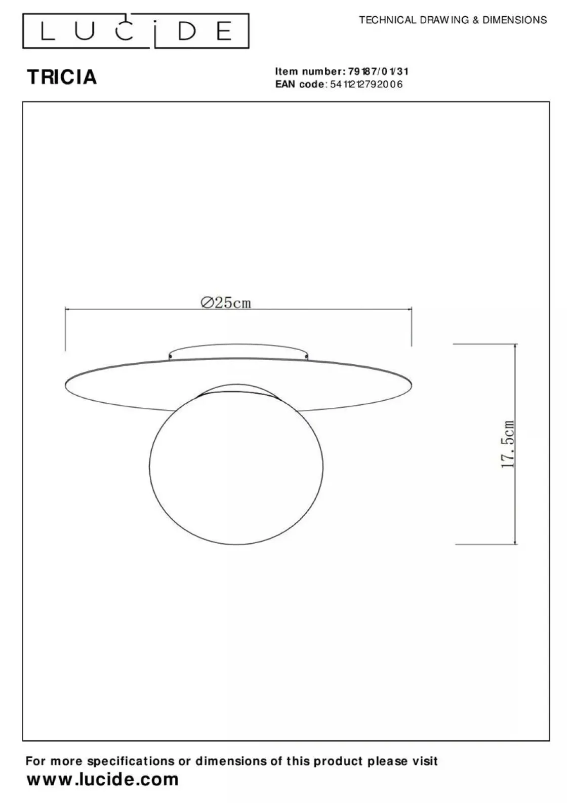 Tricia er en nydelig taklampeserie som finnes i fargene svar, hvit og gullfarget med opal hvit glass.