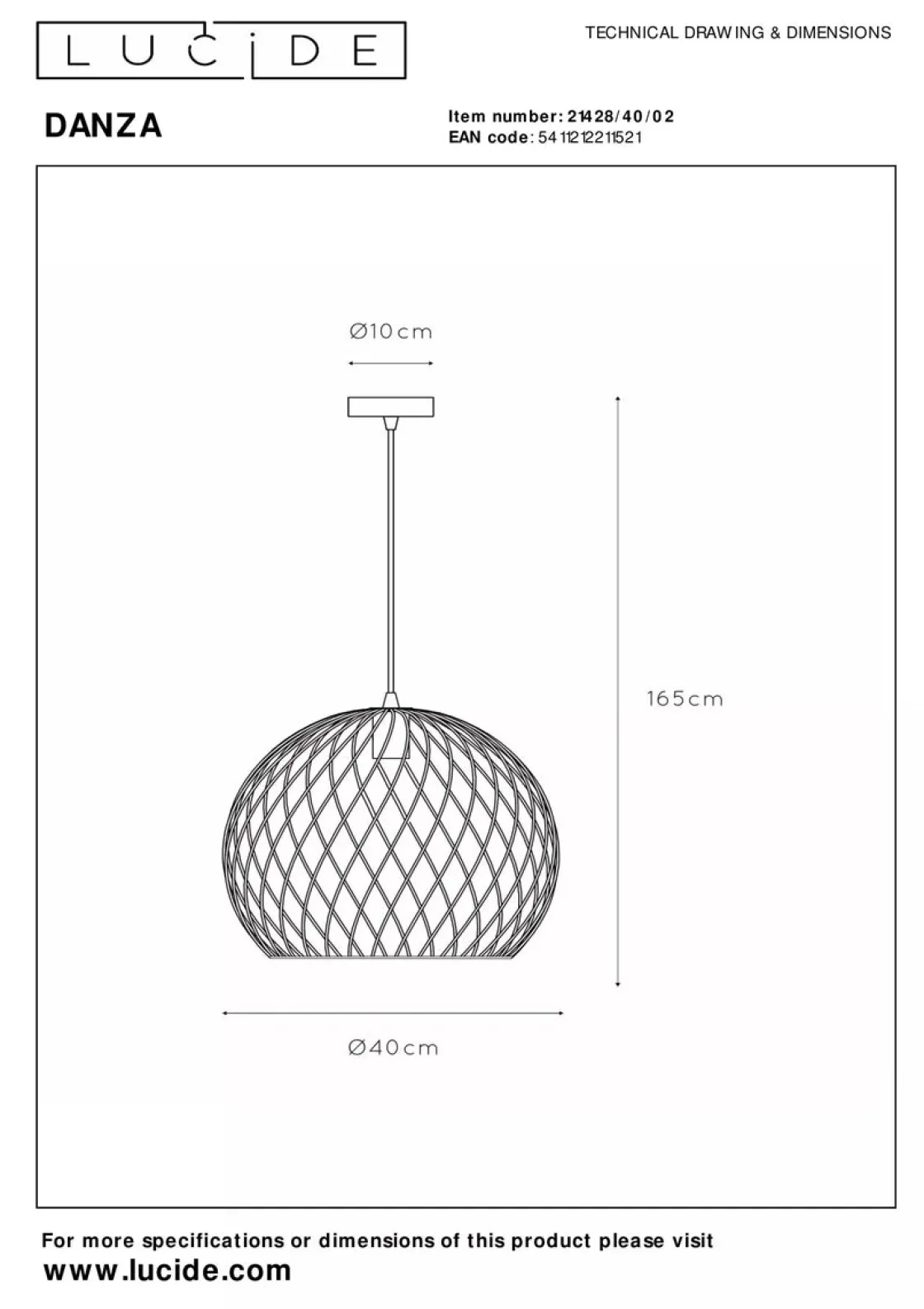Lengde ledning fra takfeste og ned til skjerm: 130 cm