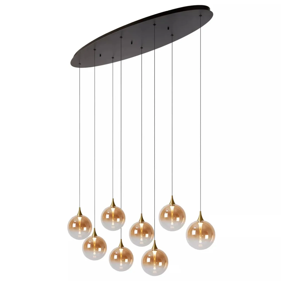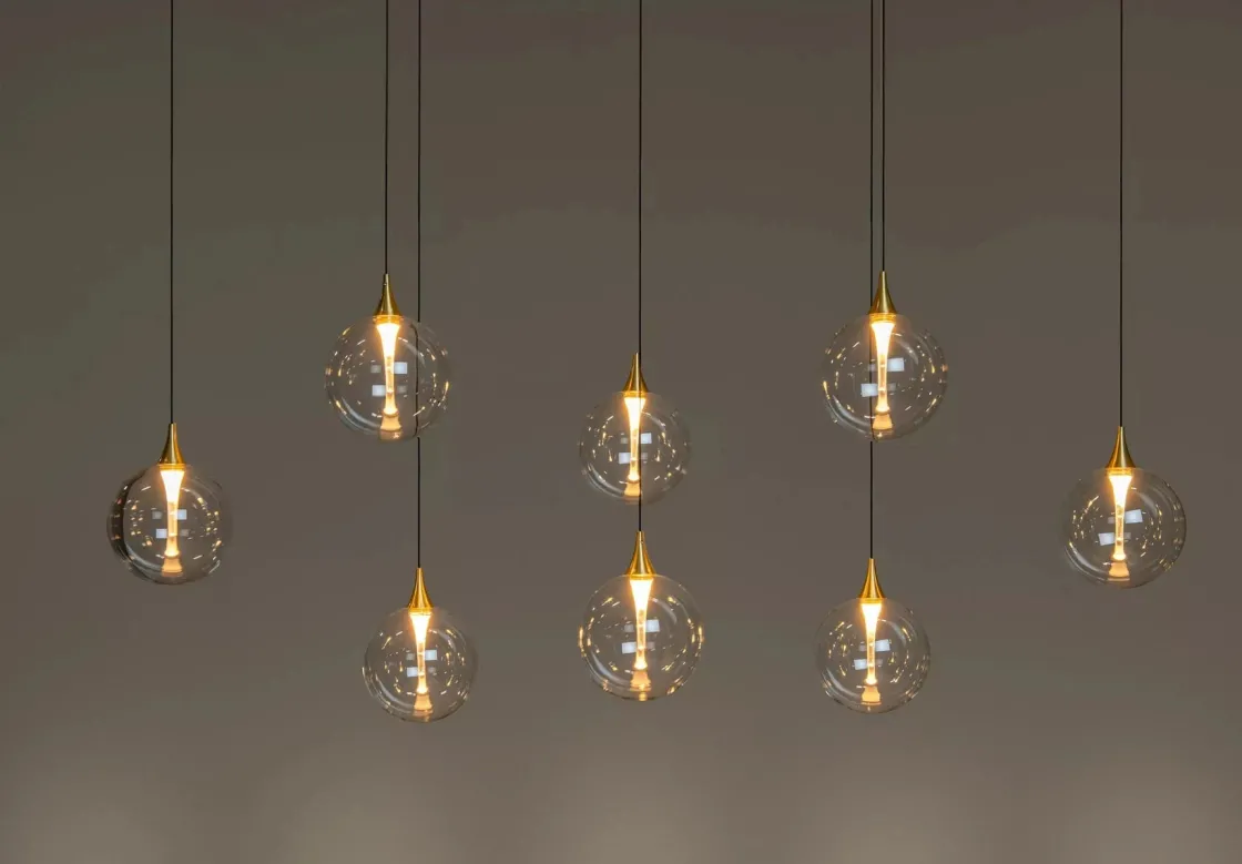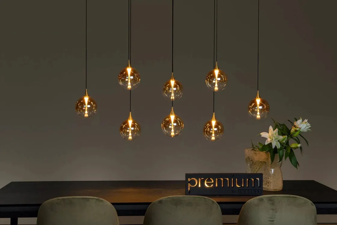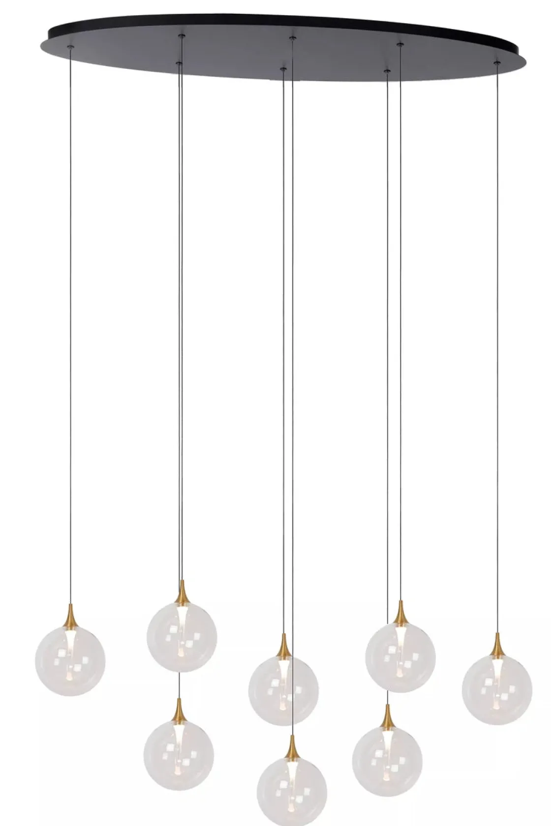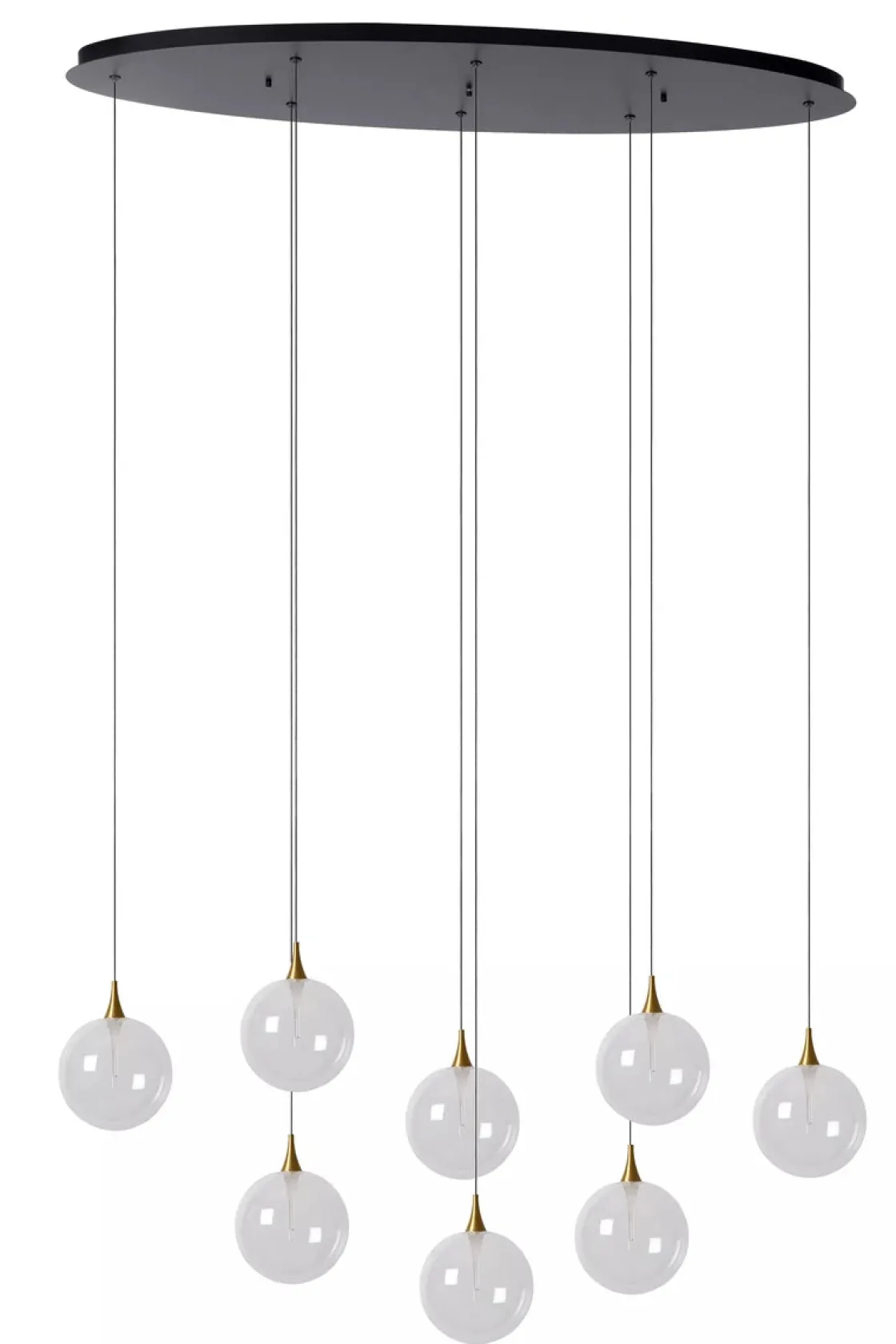 Synes du noen ganger det er vanskelig å holde alle ballene i luften? Overlat det til Gisela, en hengende lampe som består av forskjellige pendler med klare glasskuler, som hver kan justeres i høyden. De integrerte LED-pærene kan dimmes og sprer varmt, hvitt lys. Denne tidløse, sfæriske designen fungerer godt i både klassisk interiør og moderne hjem. Enten du henger dem i samme høyde eller lekende fallende: du vil alltid score med denne elegante hengende lampen.