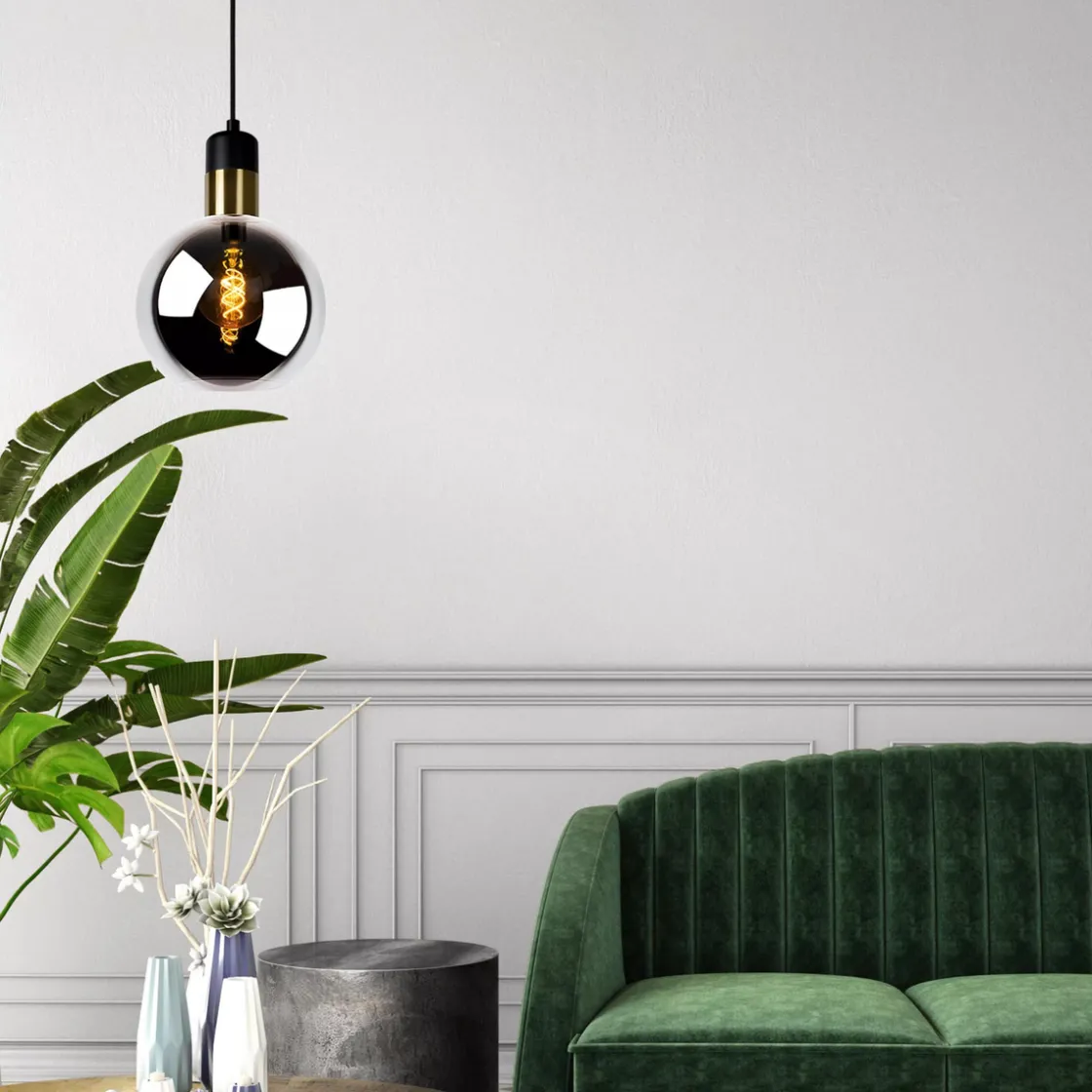 Julius er en nydelig taklampe som gir ett flott blikkfang. Lampen leveres med røykfarget glass. Modellen finnes også som enkel pendel, skinne og gulvlampe