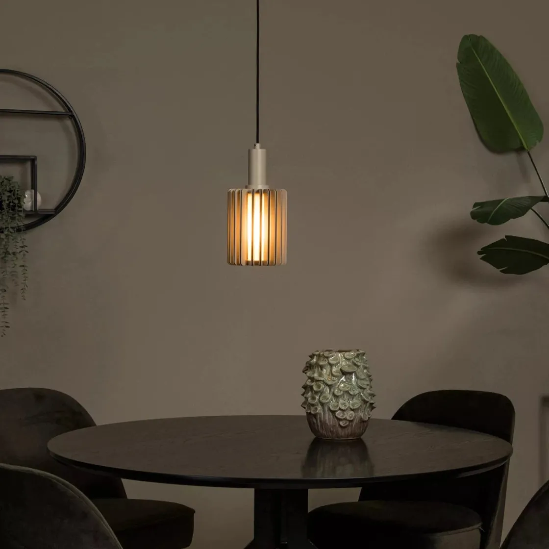 Du kan ikke gå galt med Lambres. Denne elegante pendellampen med en unik pendel er en ekte showstopper. Det sylindriske anhenget har en ramme av fine metalllameller som omslutter en diffusor av frostet glass, og skaper et konsekvent mykt, diffust varmt hvitt lys. Du kan enkelt justere høyden på pendellampen under installasjonen. Hvis du kobler denne praktfulle lysekronen til en dimmer, kan du legge til enda mer atmosfære til hjemmet ditt. Så hva venter du på?