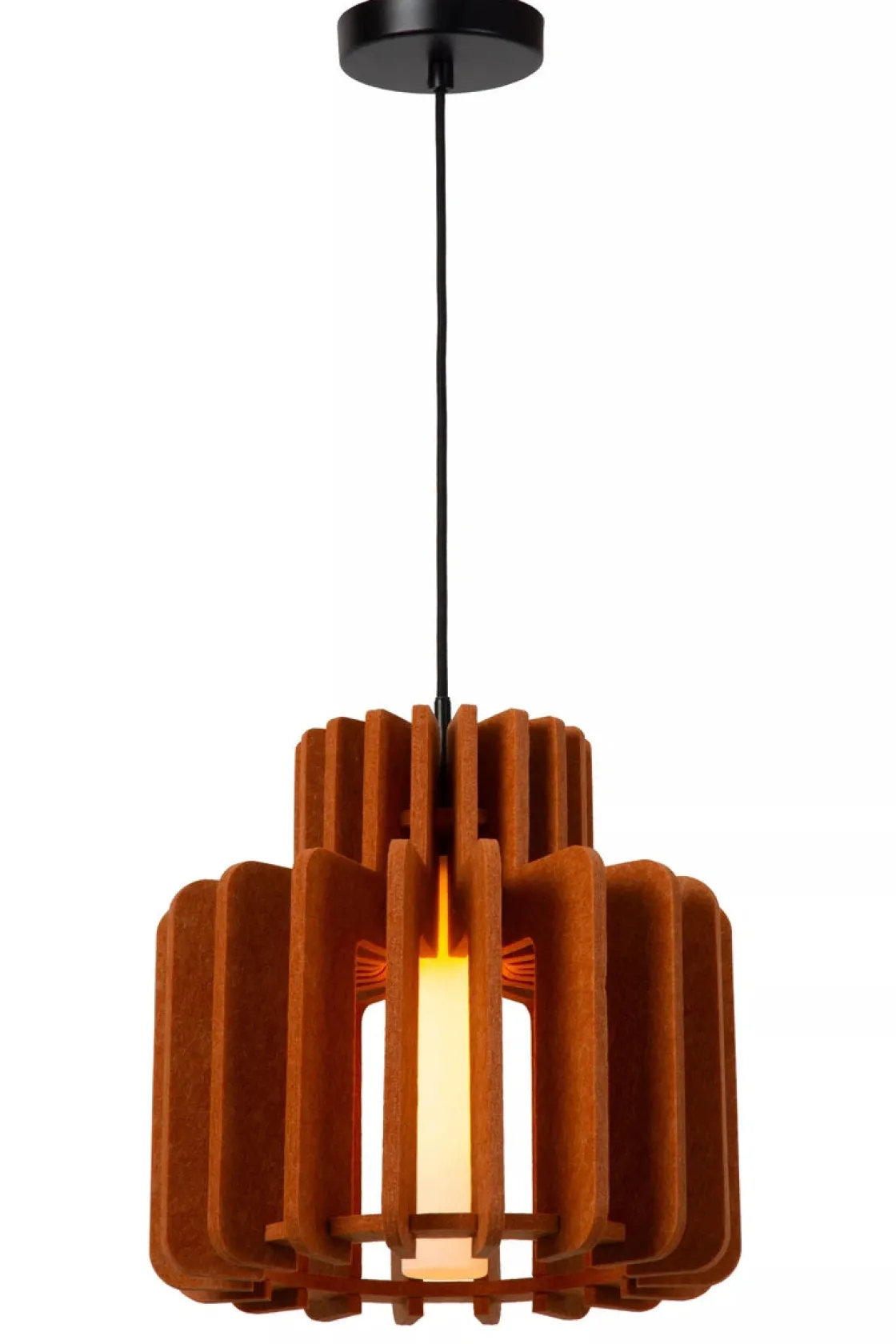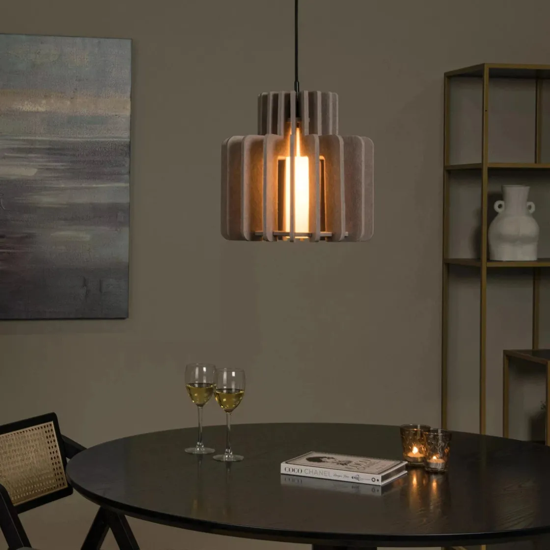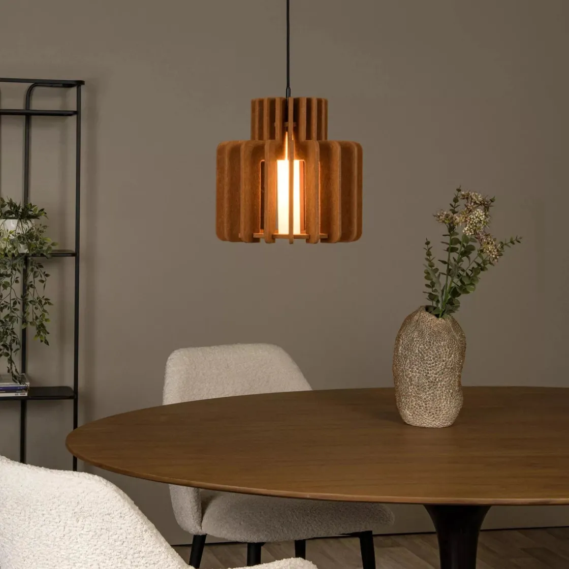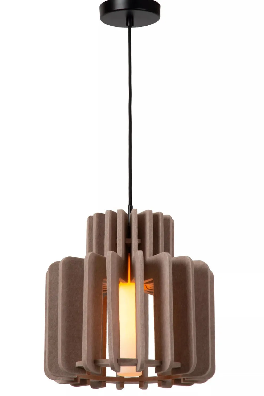 Name it, Rollo har det. Denne pendellampen har et naturlig, men dristig utseende, noe som gjør den perfekt for skandinavisk eller minimalistisk interiør. Rollo er laget av høykvalitetsfilt laget av resirkulerte materialer, og har en sylindrisk frostet glassskjerm. Du kan enkelt justere høyden på lysekronen under installasjonen eller koble den til en dimmer for enda mer atmosfære. Filten gir ikke bare et stilig preg, men forbedrer også akustikken i hjemmet ditt. Med Rollo er stemningen alltid rett.