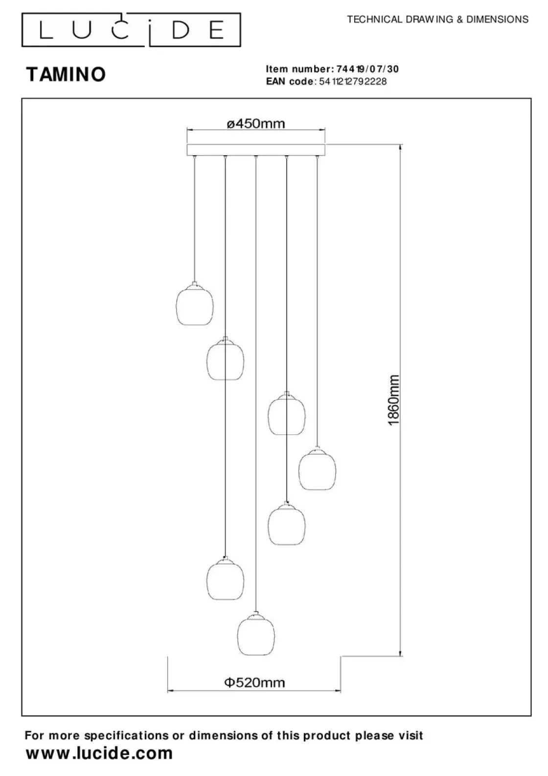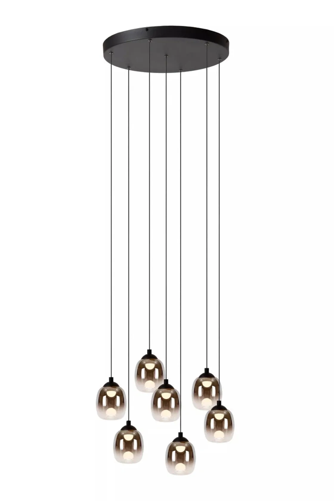 Når du tenker på Tamino, tenker du på fred og komfort. Denne vakre pendellampen lever absolutt opp til navnet sitt. De fem anhengene er laget av høykvalitets røykglass med innebygd linse, noe som skaper en unik lyseffekt som reflekteres i glasset. Tamino avgir en myk, dempet glød, spesielt når den er koblet til en dimmer.