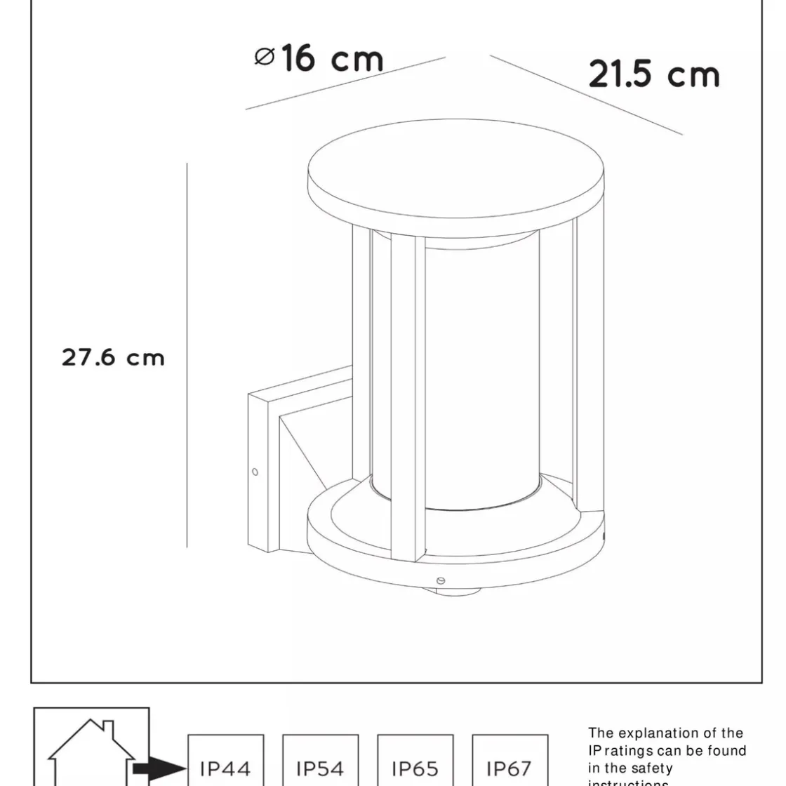 Denne vegglampen er spesielt designet for langvarig og pålitelig utendørs bruk. Cadix er en del av IP65-kategorien, noe som betyr at den er støvtett og beskyttet mot vannstråler og regn.