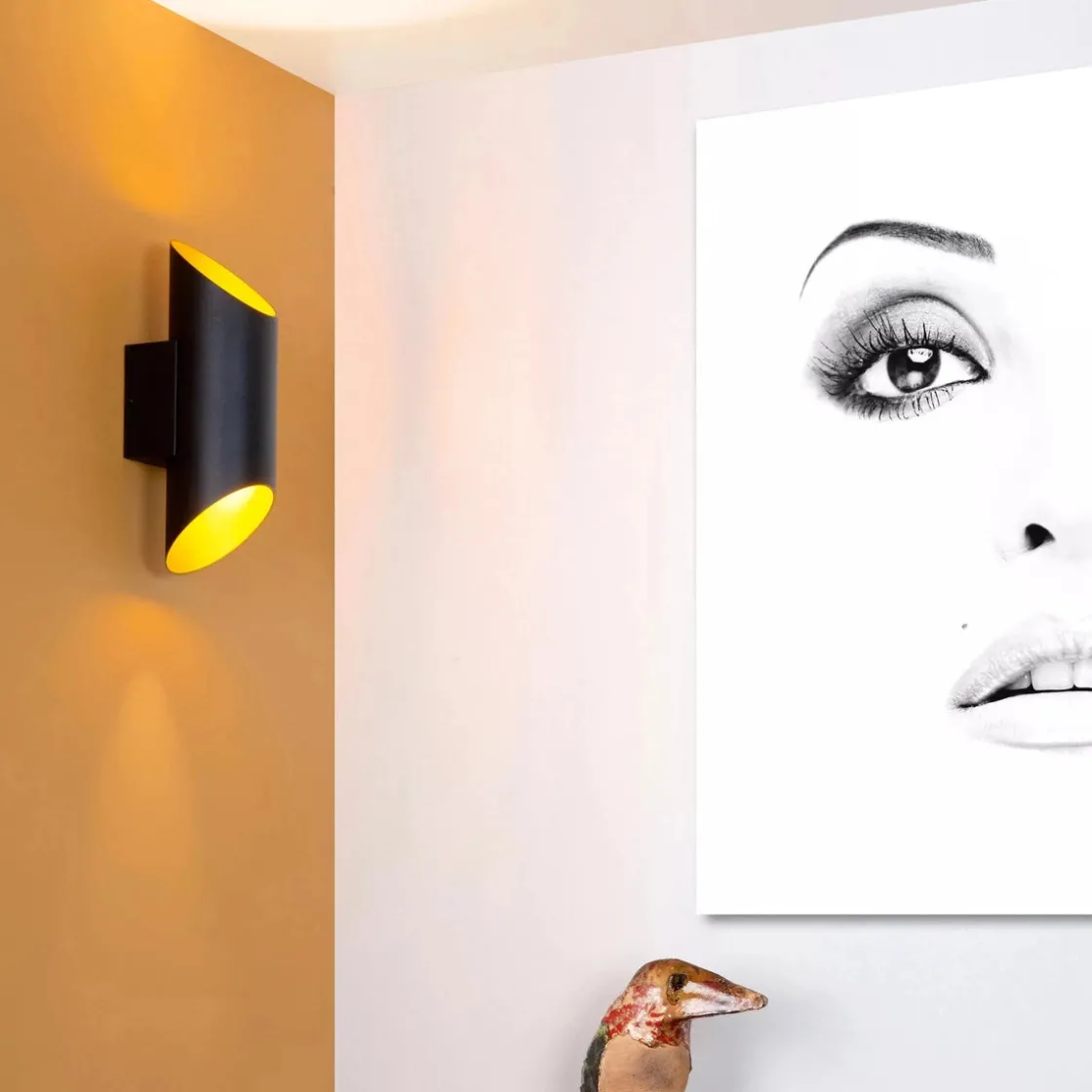 Quirijn er en moderne vegglampe, som finnes i 2 ulike farger svart eller hvit med matt gulfarget innside.