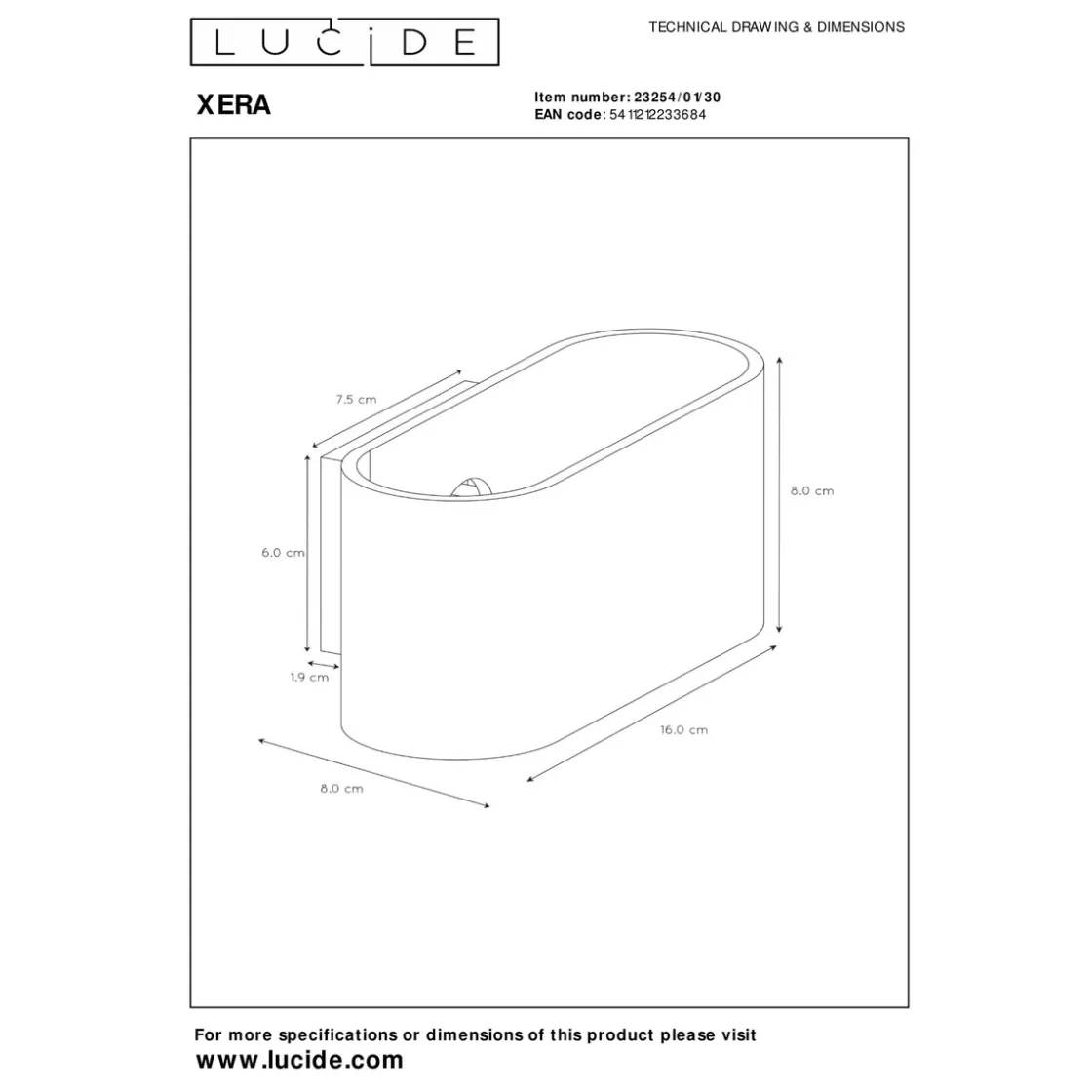 Xera er en rålekker vegglampe som lyser både opp og ned. Kan dimmes hvis du velger en dimbar lyspære og bruker en ekstern dimmer.