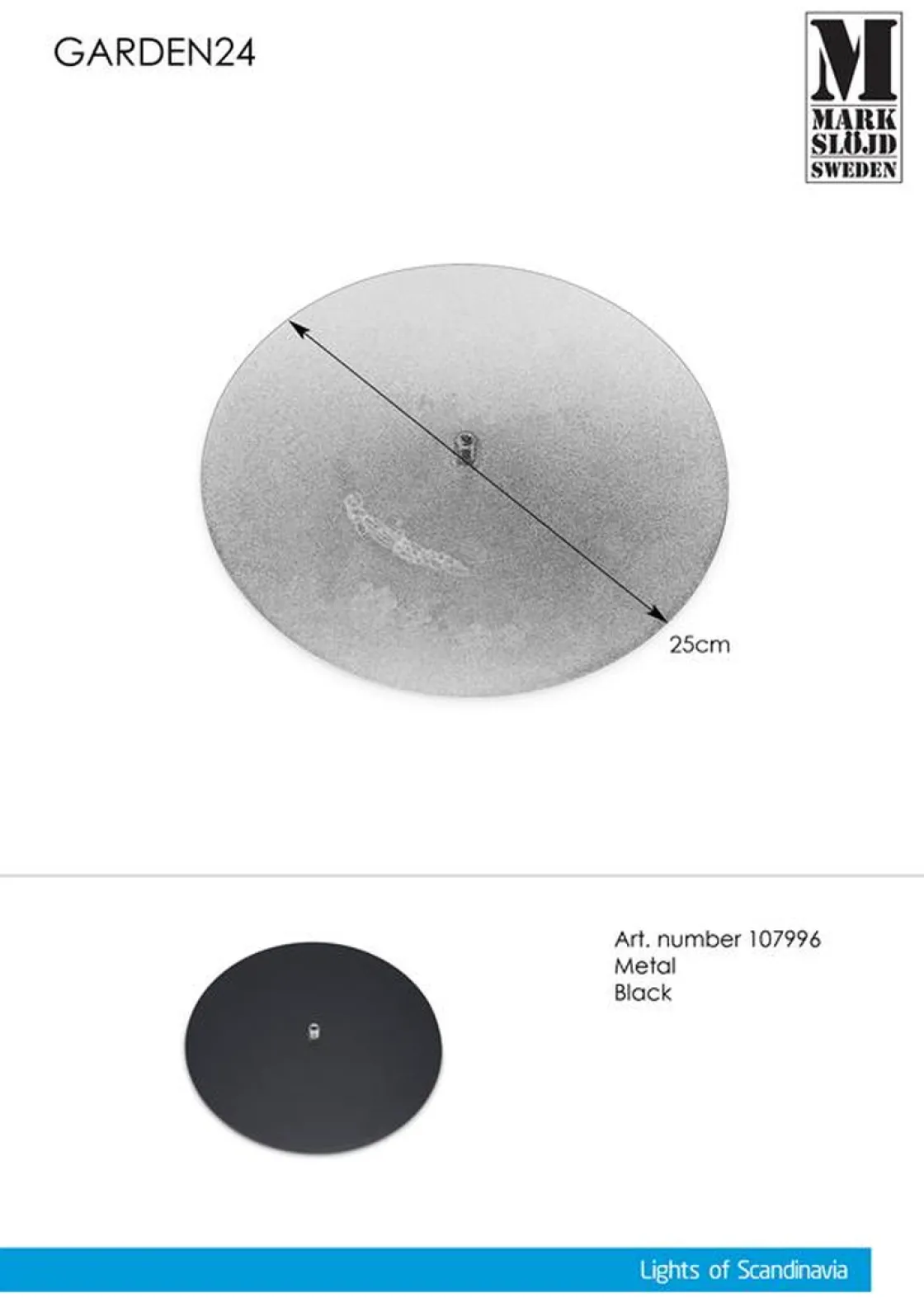 Bunnplate i sort metall for Garden 24-systemet. Kan benyttes ved montering av spotlights og pullerter på f.eks. terrasse.