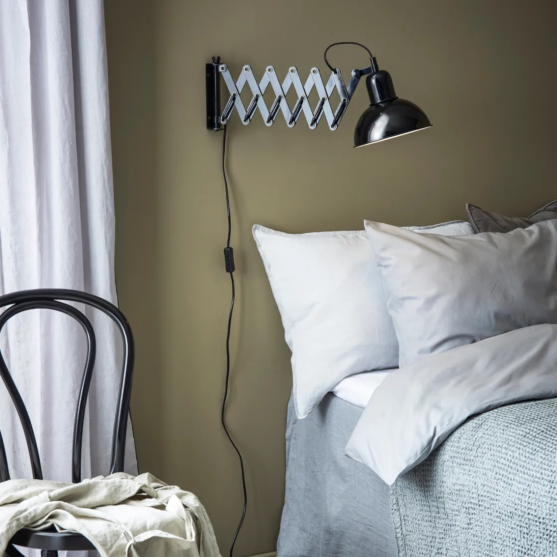 Riggs er en stilfull vegglampe med justeringsmuligheter. Du behøver en lyspære med E27-sokkel til lampen.