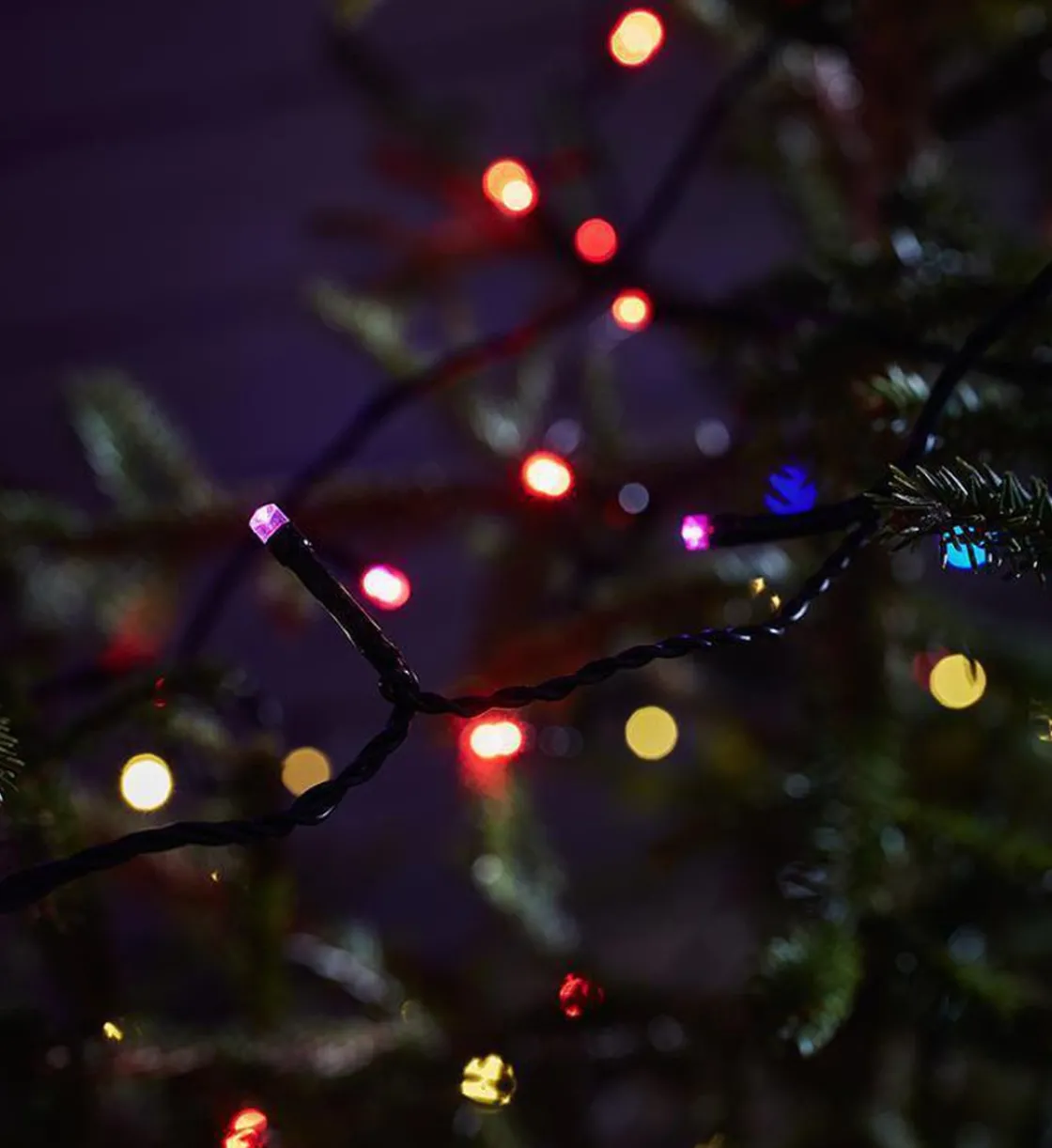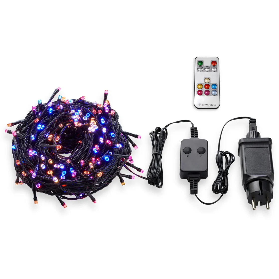 Lysslynge 20 meter med 200 lys , velg mellom forskjellige blinkende innstillinger og farger med fjernkontrollen. Kan henges utendørs.