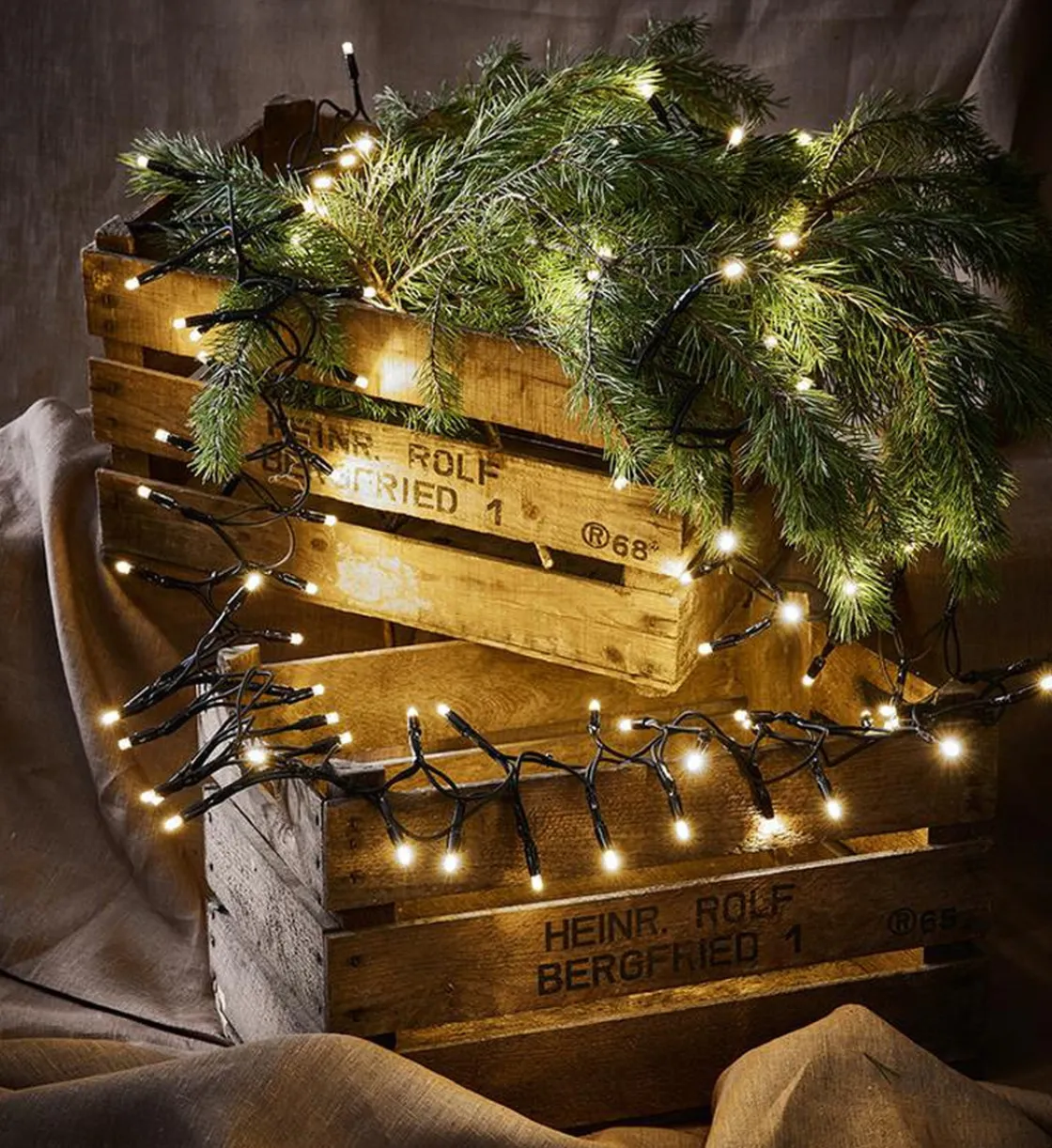 Chrissline lysslynge original med 100 lyspunkter i LED og varmhvit lys. Godkjent for utendørs bruk. IP44. Cluster slynge på 5 meter og en total effekt på kun 9,2W. Kan kobles videre til ekstra slynger i Chrissline-systemet. Kan kobles til maks 100m eller 2500 lyspunkter.