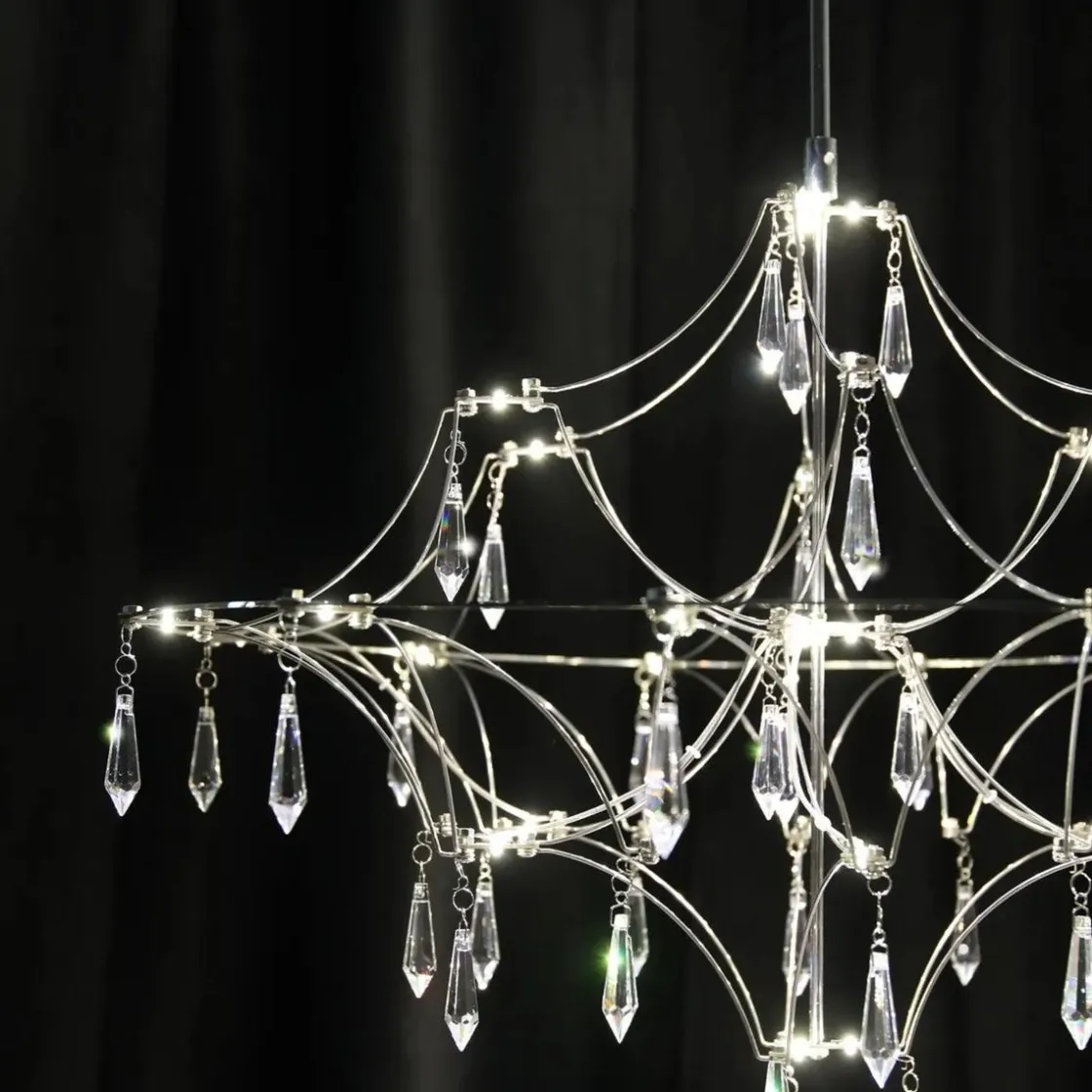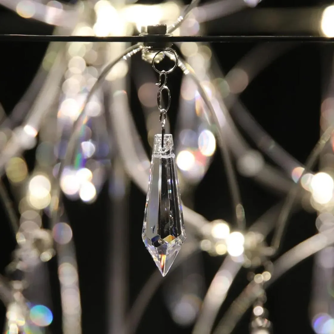 Ta forsiktig krystallene ut av den separate esken og fest dem på stålrammen med 33 LED-lys.