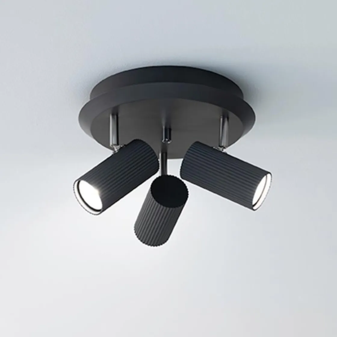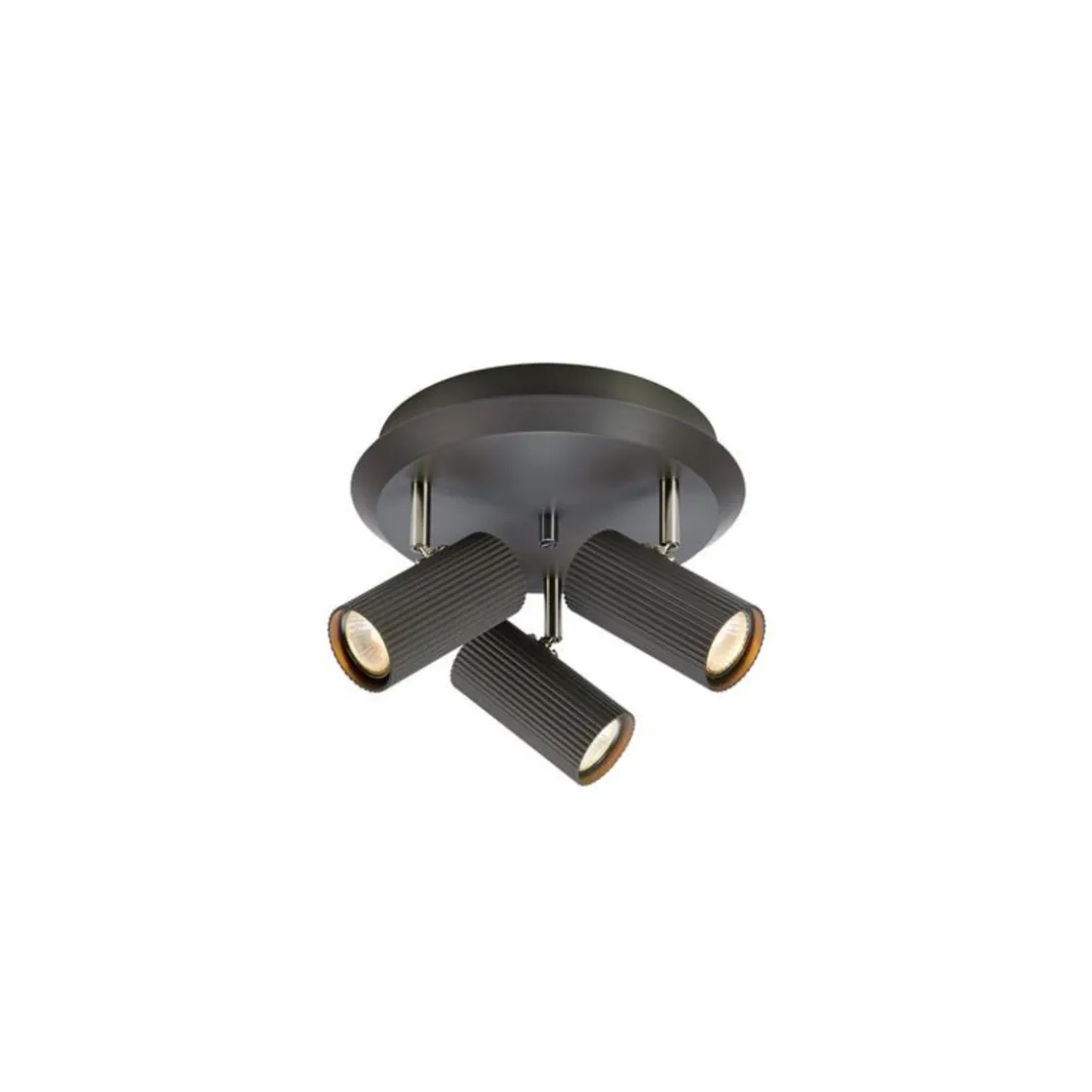 Roterbart og justerbare spotthoder i enkel grå utførelser med små detaljer.