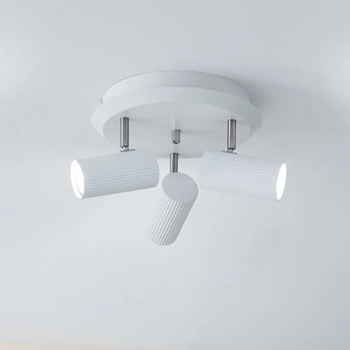 Roterbart og justerbare spotthoder i enkel hvit utførelser med små detaljer.