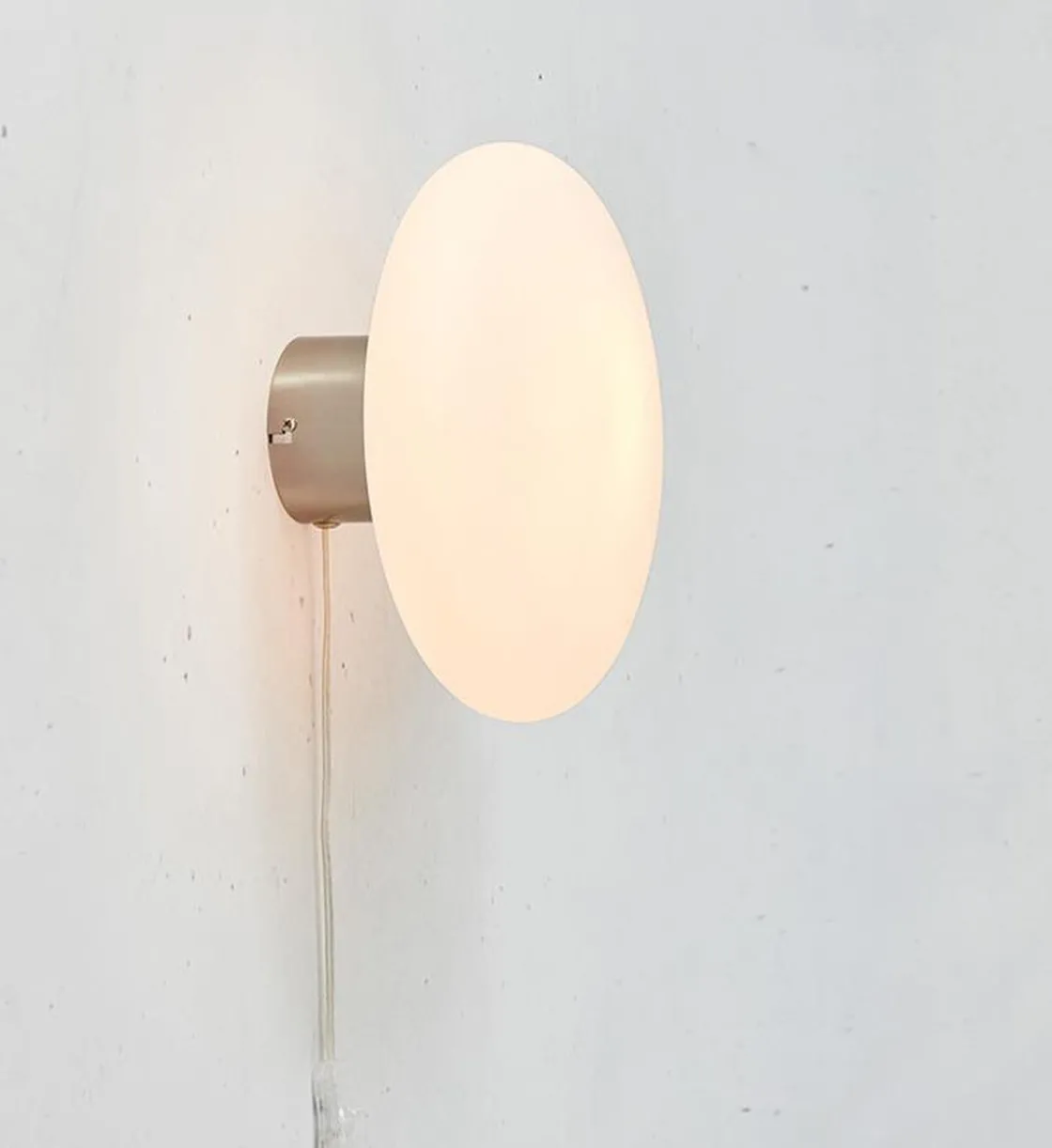 Locus 2 i 1 lampe fra Markslöjd. Kan monteres i enten tak eller vegg. Sokkel i stål og skjerm i ovalt hvitt glass 2m gjennomsiktig PVC-kabel med bryter på ledning og støpsel. Koblingsboks i platen for enkelt å kunne montere på direkte innkommende strøm.