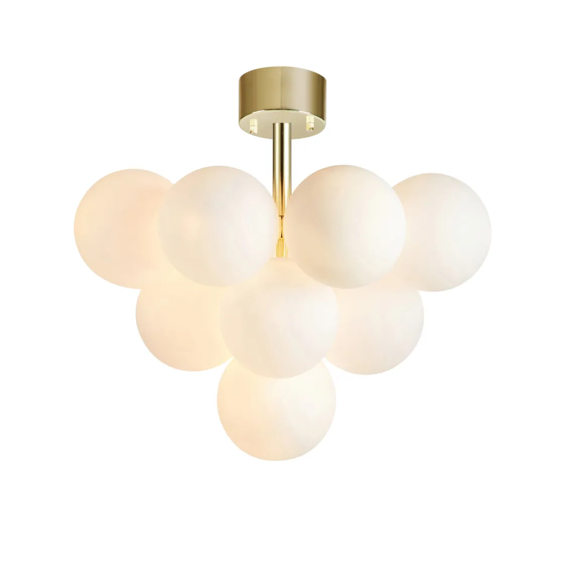 Merlot er en nydelig og dekorativ taklampe med opalhvite glasskupler. De opalhvite glasskuplene sørger for et jevnt og behagelig lys.