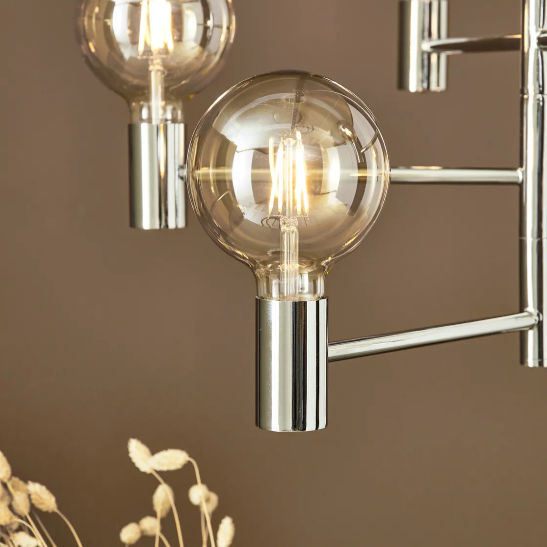 Capital-pendel fra Marksløjd, Justerbar i høyden og med vridbare armer. Minste totalhøyde er 77 cm og maks. høyde 169 cm.