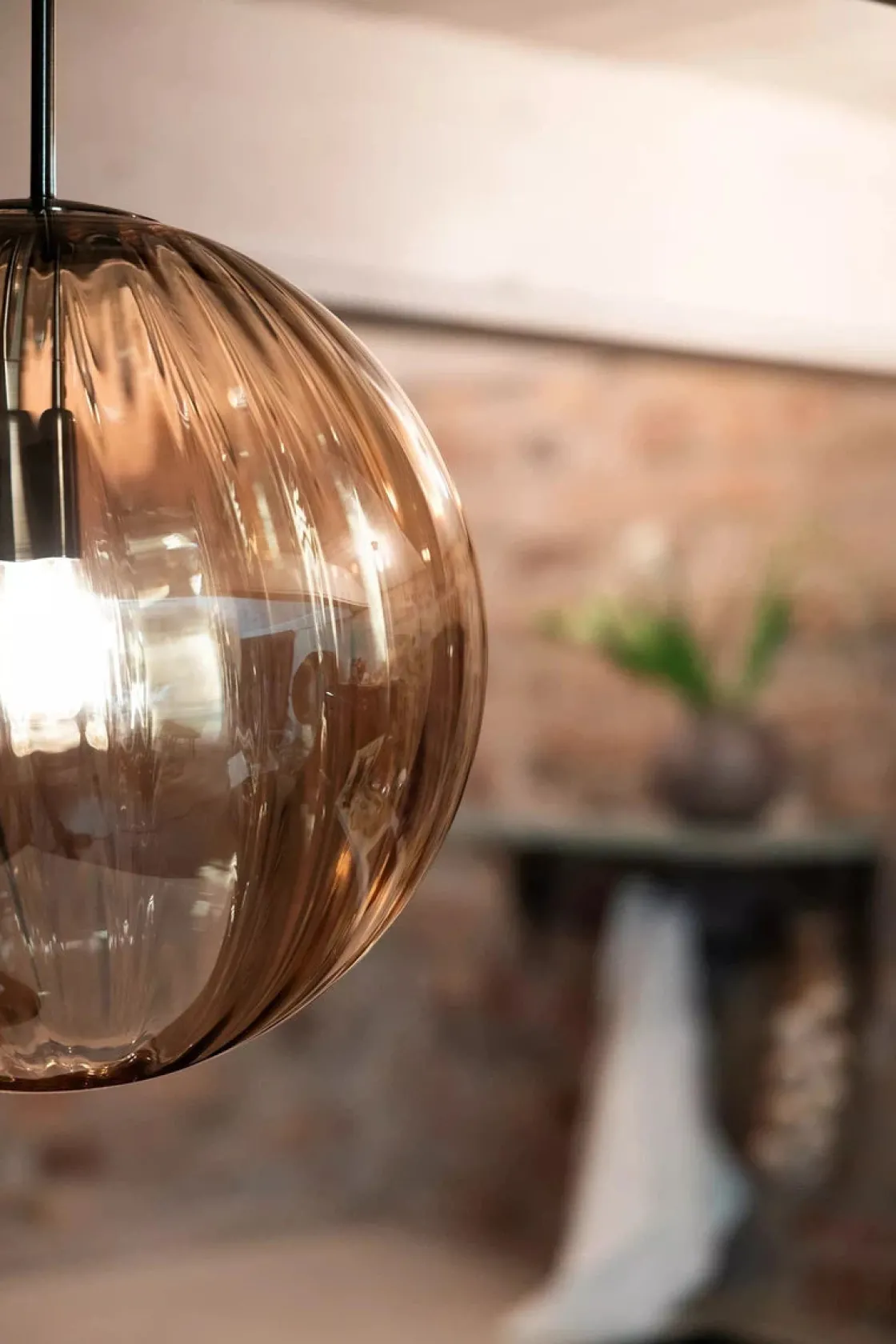 Fengari er en nydelig pendel med kuppel i glass, velg mellom røykfarget eller amberfarget glass.
