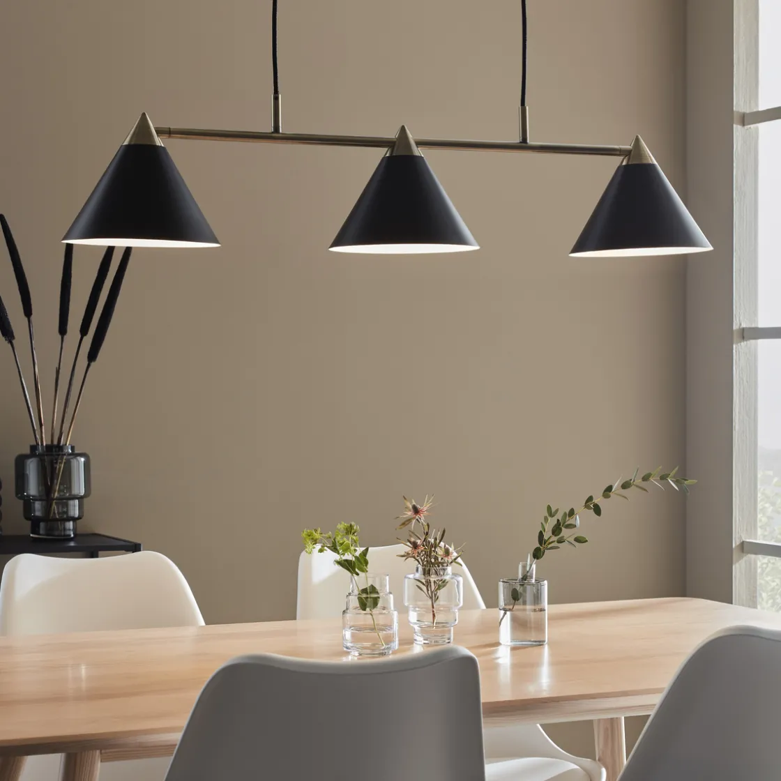 Klint er en elegant og stilren takpendel, modellen finnes som rett og cross modell i fargene hvit eller sort.