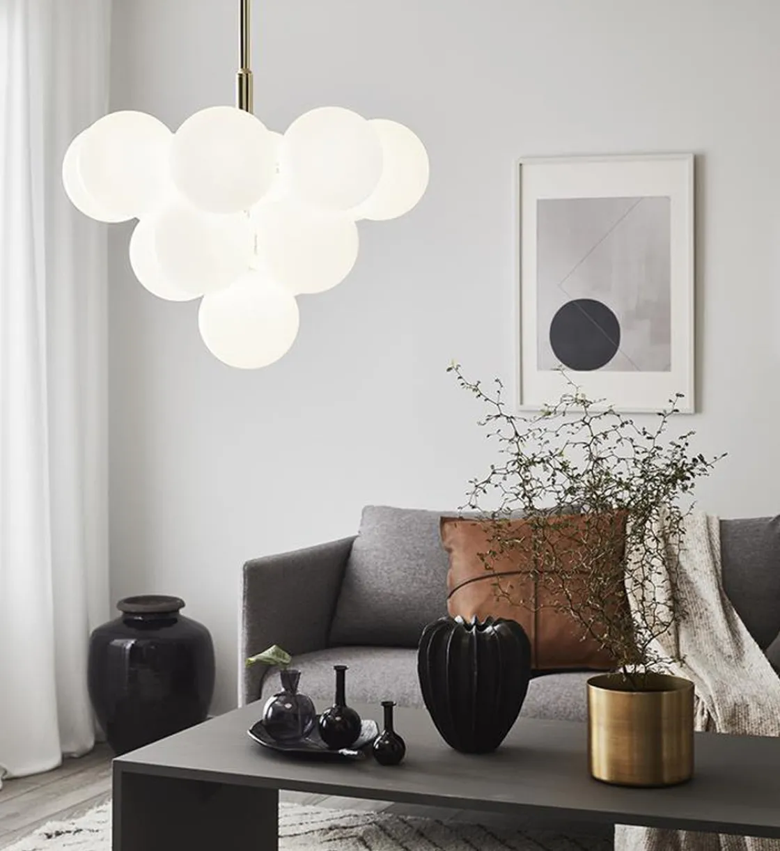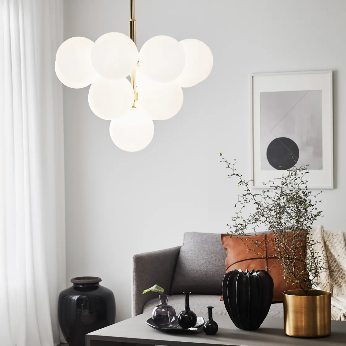 Merlot er en fantastisk flott pendel med en klynge av opal glass. Nydelig dekorativ lampe i stua.