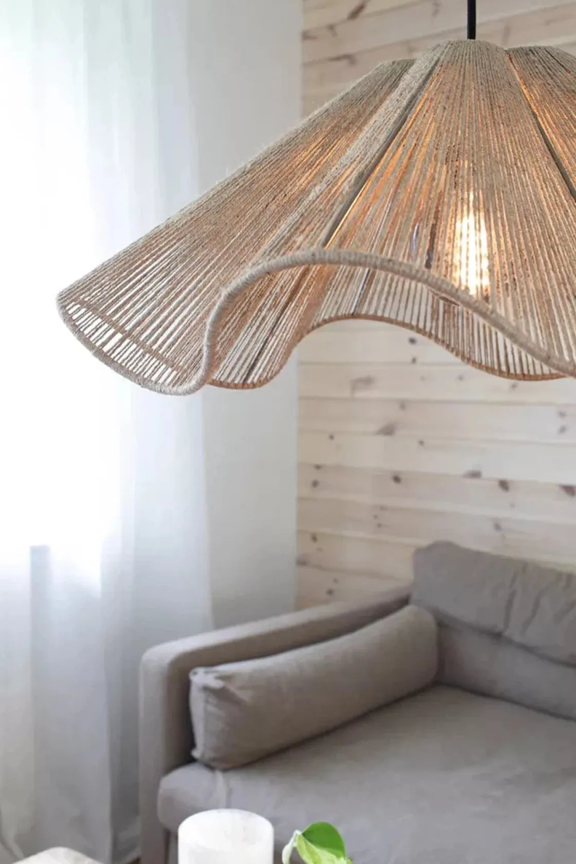 - Atmosfærisk belysning: «Nami» takpendel gir en dempet og stemningsfull belysning som skaper en avslappende atmosfære. Den naturlige fargepaletten og jutens tekstur gir en følelse av ro og balanse.