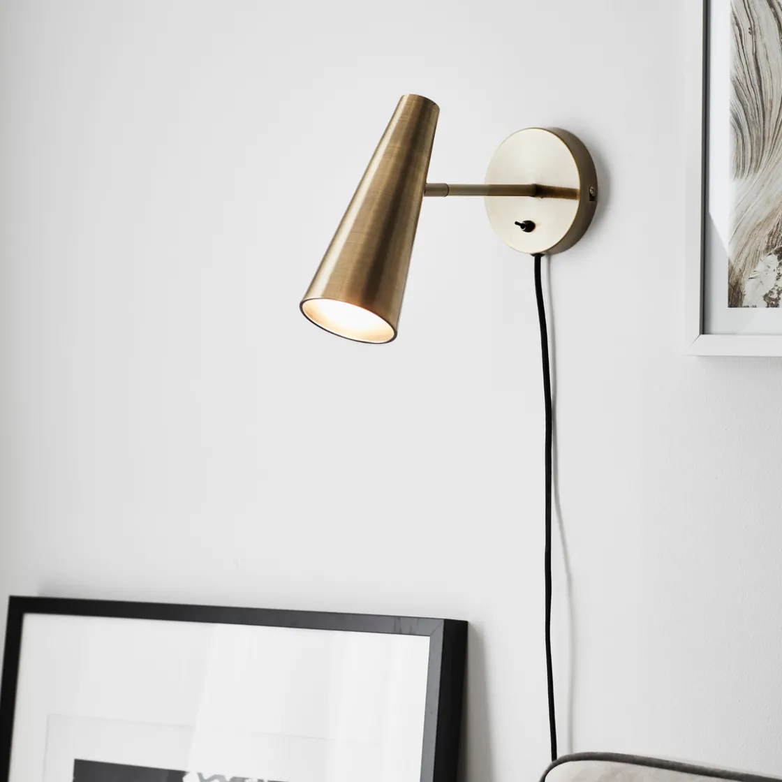 Peak er en stilfull vegglampe i metall, med av/på-lysbryter på veggplaten. Du behøver 1 stk lyspære med E14-sokkel til lampen.