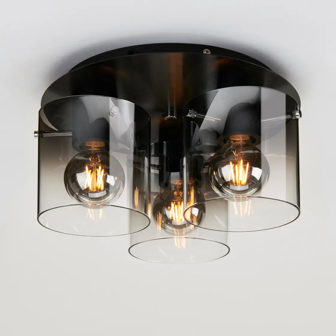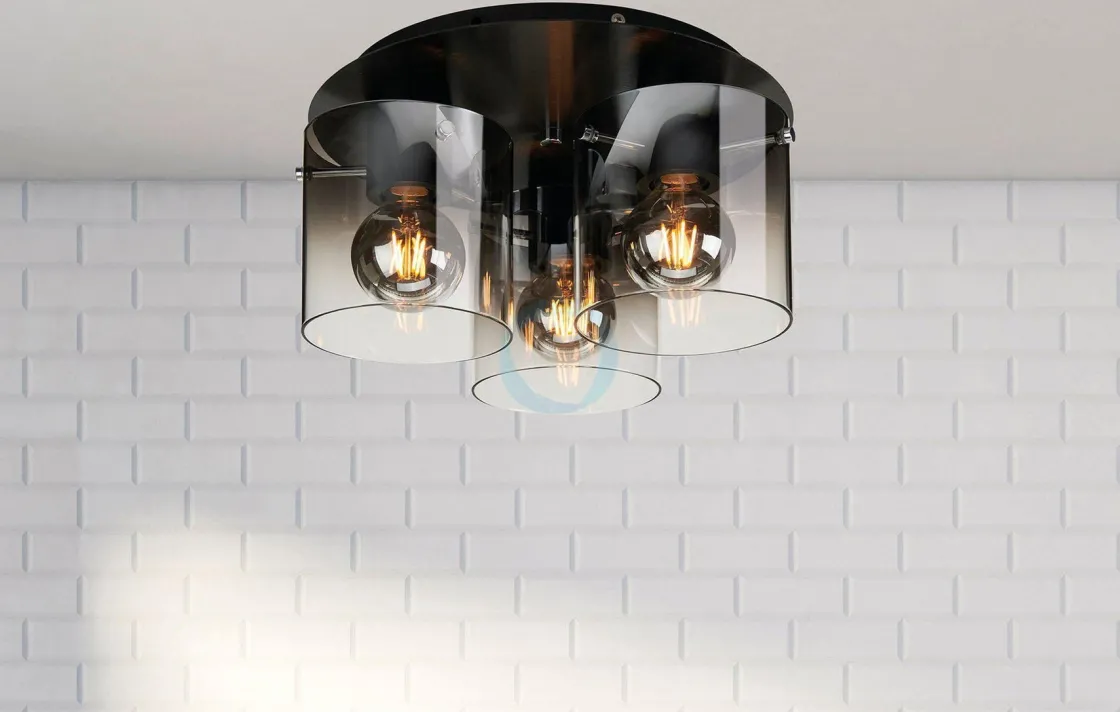 Roxy stilfull taklampe med røykfarget glass. Gjør lampen komplett med dekorative lyspærer.