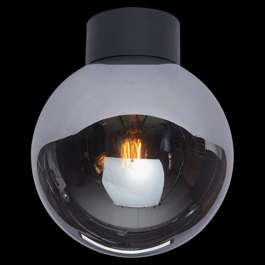 Dekorativ taklampe i røykfarget glass.