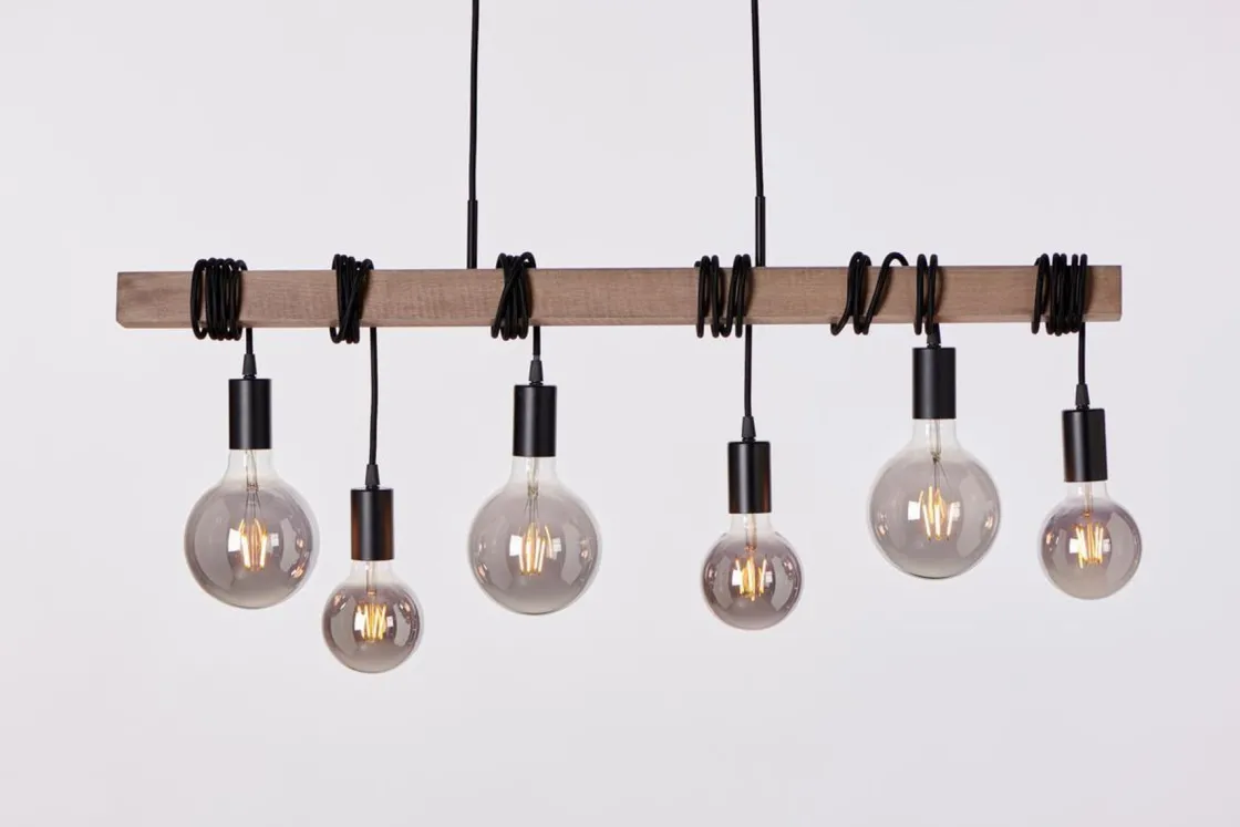 Luga er en nydelig og trendy taklampe. Bestem selv høyden på de enkelt pæreholderne og dekorer lampen med noen flotte dekorative lyspærer.