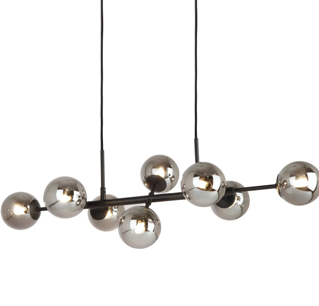 Soprano har et eksklusivt uttrykk og består av åtte glasskuler montert på en sort dekorativ metallstang.