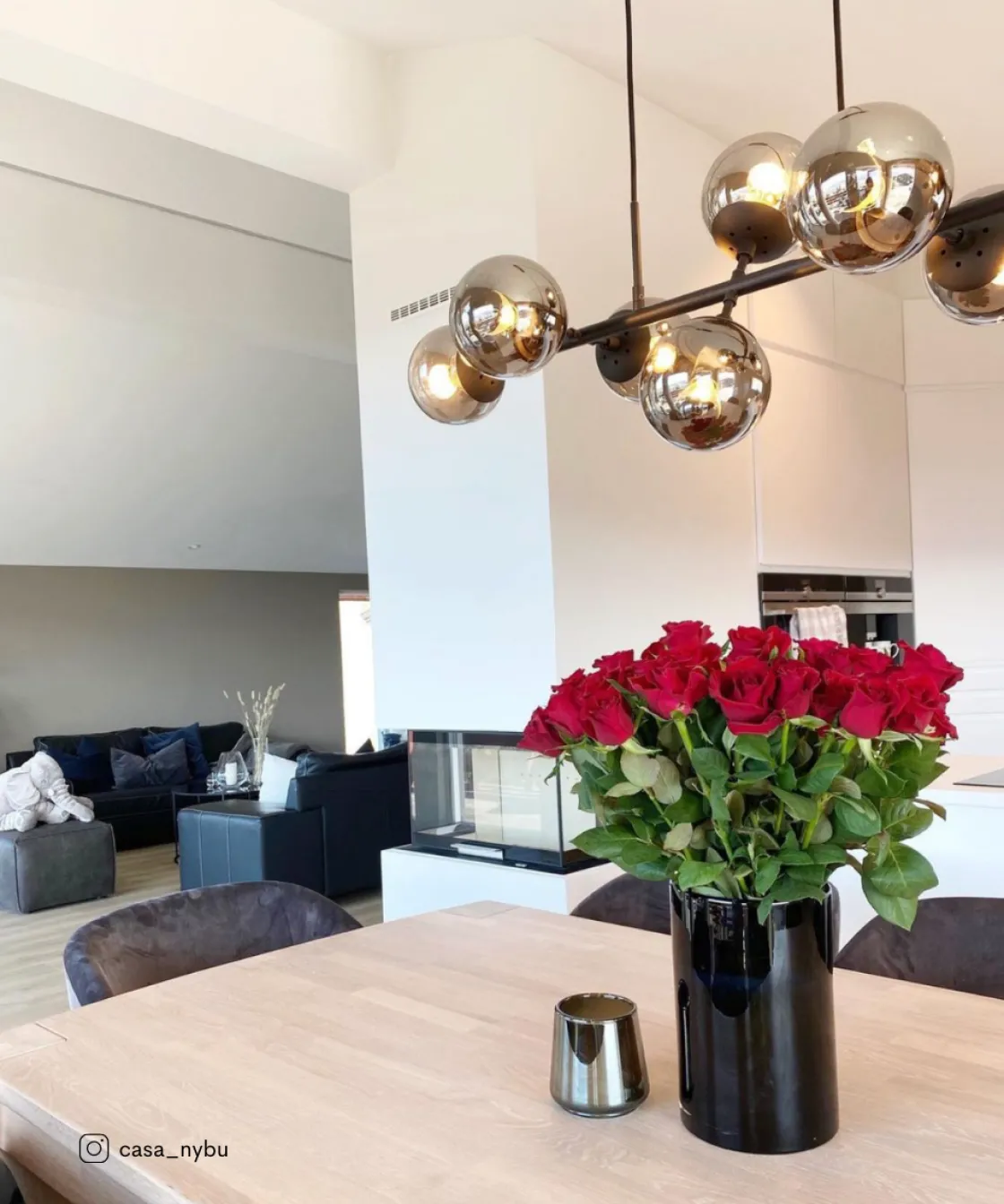 Lampen passer godt flere steder, alt fra over spisebordet og sofabordet til kjøkkenet og i gangen.