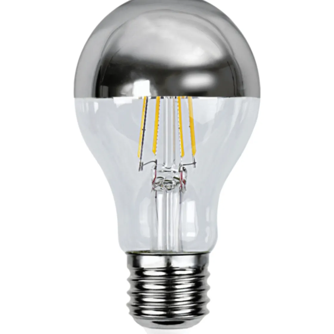 Dekorativ LED-lyspære med klart glass og forkrommet topp gir deg det tilnærmet likt lys som vår gode gamle glødepære. Også kjent som toppforspeilet.