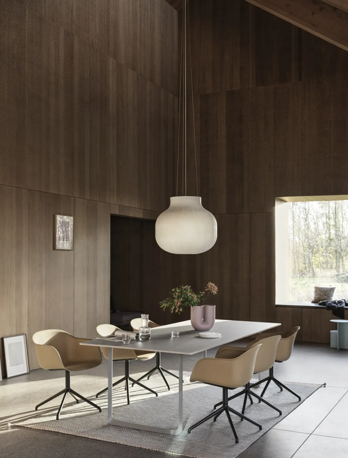Strand Pendant Lamp fra Muuto er designet med myke, lekne former for et moderne uttrykk. Designet på taklampen gir både diffus belysning og direkte belysning. Designet er laget i et sprøytet kokong-materiale som består av bittesmå tråder for en kompleks og spennende struktur, som sammen med sin moderne form gir Strand Pendant Lamp et nesten skylignende utseende. Kokong-materialet filtrerer lyset og gir en varm og behagelig glød. Strand Pendant Lamp henger lett i rommet, og gir komfort og harmoni til ethvert rom.