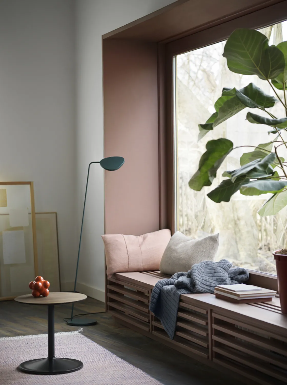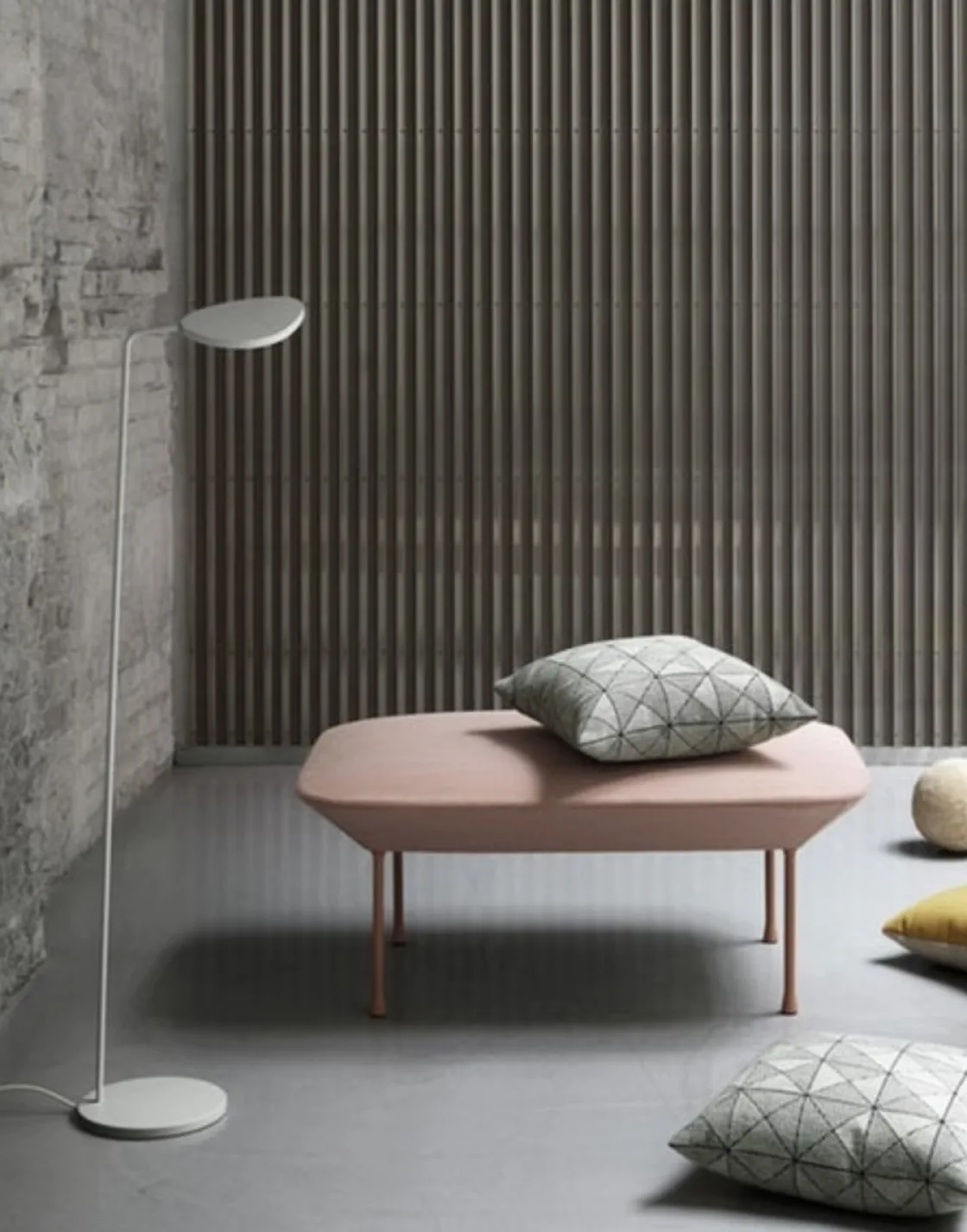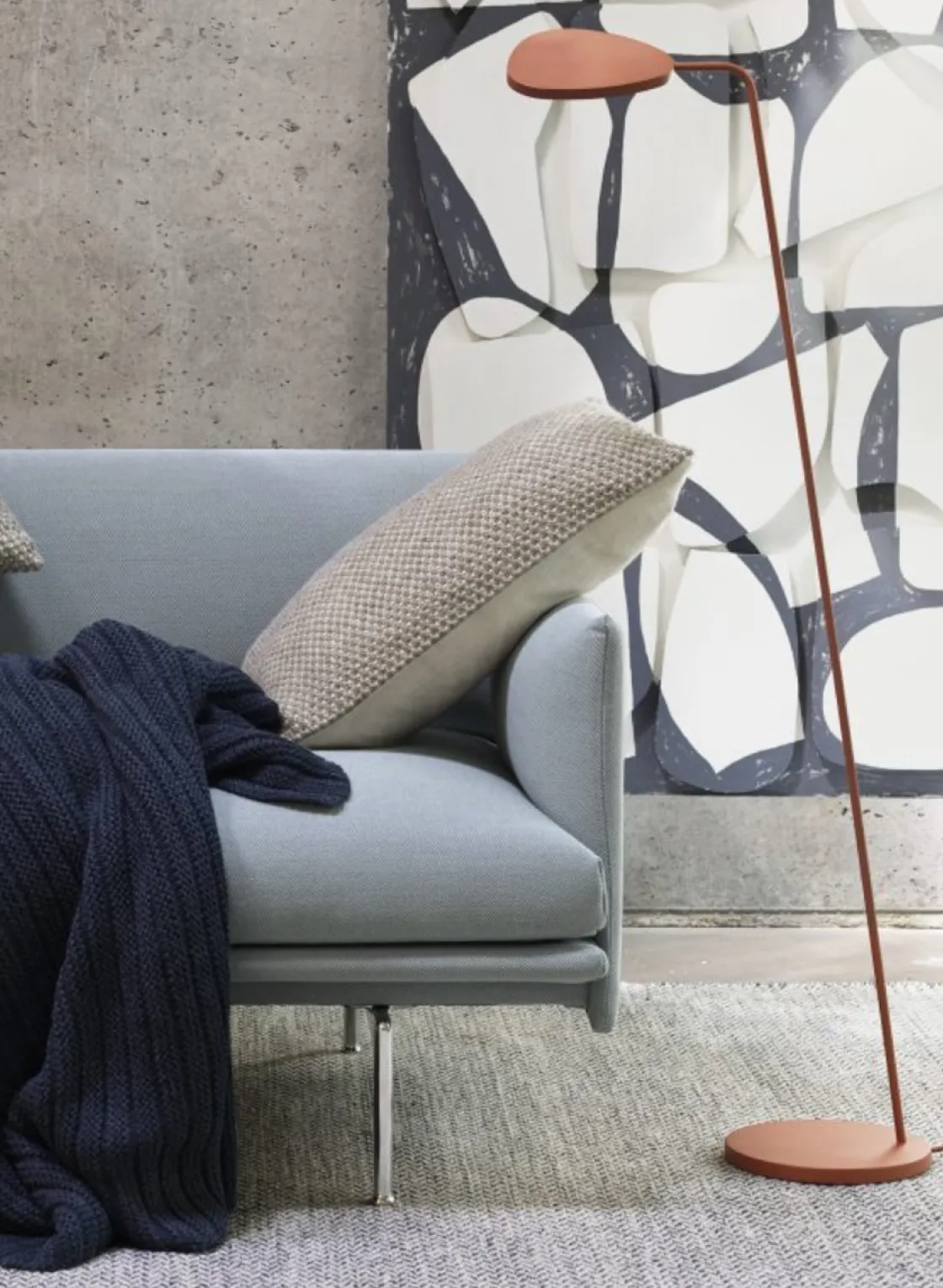 Leaf Gulvlampe fra Muuto er en moderne og elegant designet lampe som er like fin til det private hjem som til kontoret. En meget allsidig lampe som er flott å bruke ved siden av sofaen og lesestolen, ved siden av skrivebordet eller ved siden av sengen. Lampen har energisparende LED lyskilde og er dimbar. Lampen er fremstilt i aluminium og messing og kommer i fargene; grå, sort, kobber, hvit og mørke grønn.