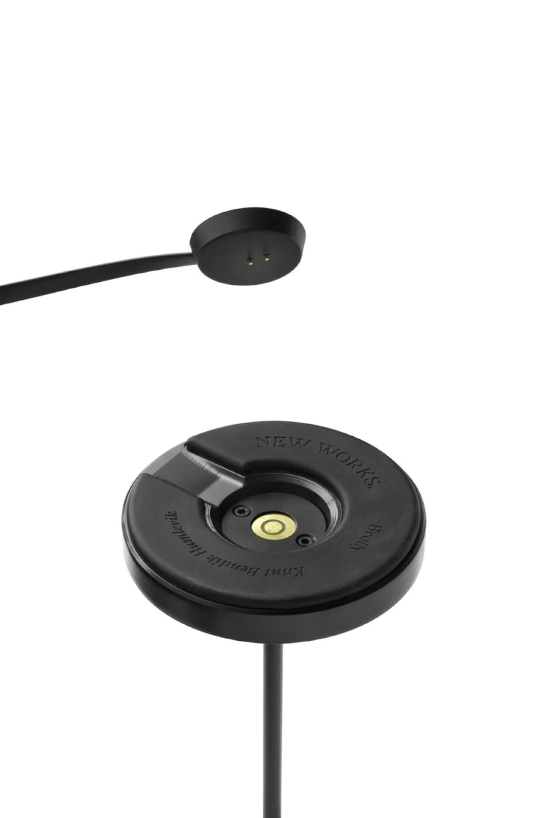 Brolly er en bærbar bordlampe i børstet stål og konisk lampeskjerm. Lampen har en tidløs design og vil gi en raffinert og lun tilstedeværelse i rommet. En tre-trinns dimmer på toppen av lampeskjermen er intelligent integrert i designet og gjør lampen enkelt å bruke. Brolly lades med en magnetisk ladekabel, som monteres diskret under foten, slik at lampen kan brukes når den lader.