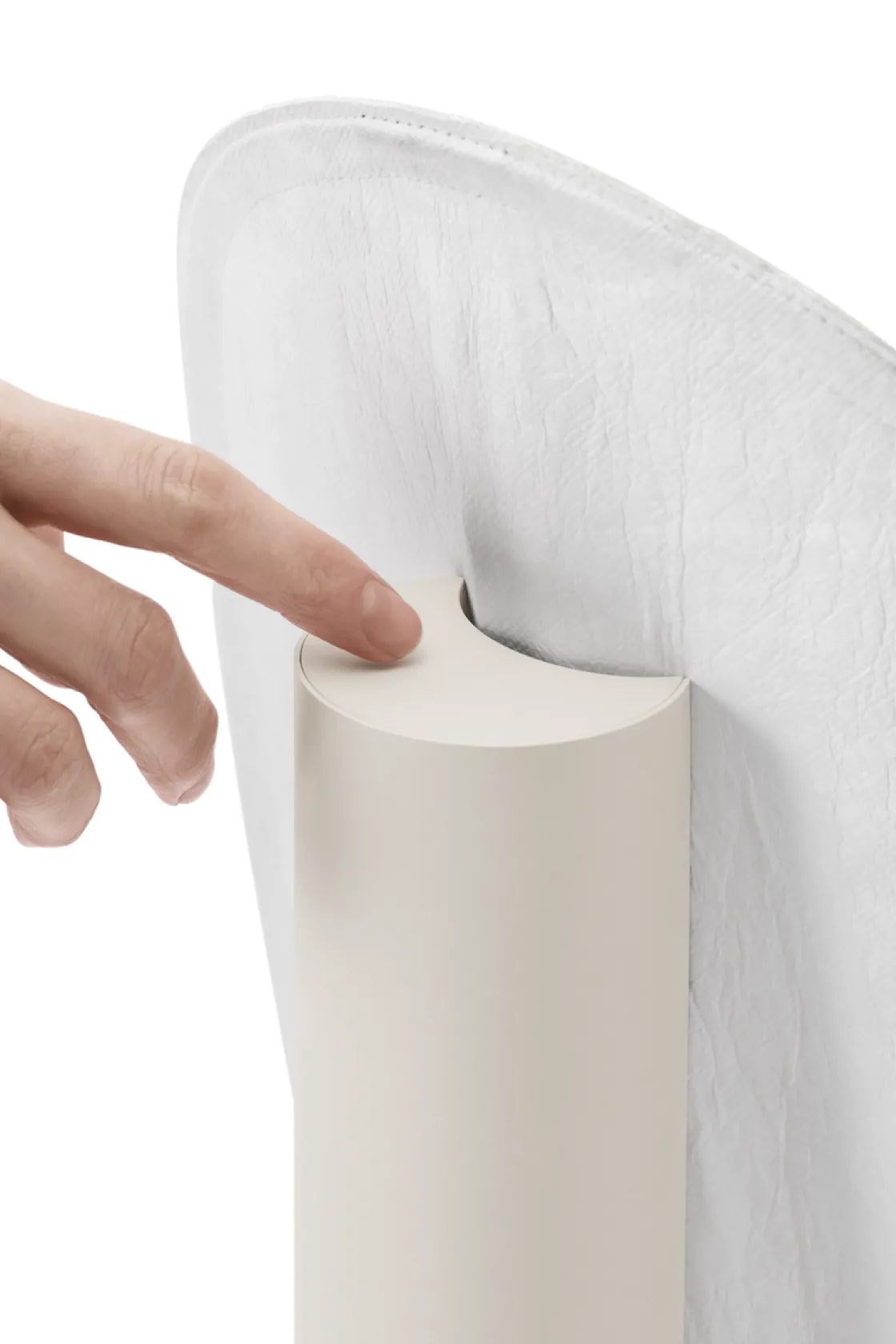 Den luftige, skylignende skyggen som kjennetegner New Works Tense Pendant er videreført i en spennende bordlampe. Den flytende formen er laget av strammede karbonstenger og er lett, slitesterk og 100 % resirkulerbar Tyvek, som vaskes for å oppnå den tiltalende krøllete effekten. Tense bordlampe hviler i en nesten vertikal posisjon på en strømlinjeformet base, og gir rikelig mulighet til å nyte skjermens vakre tekstur og myke lysspredning.