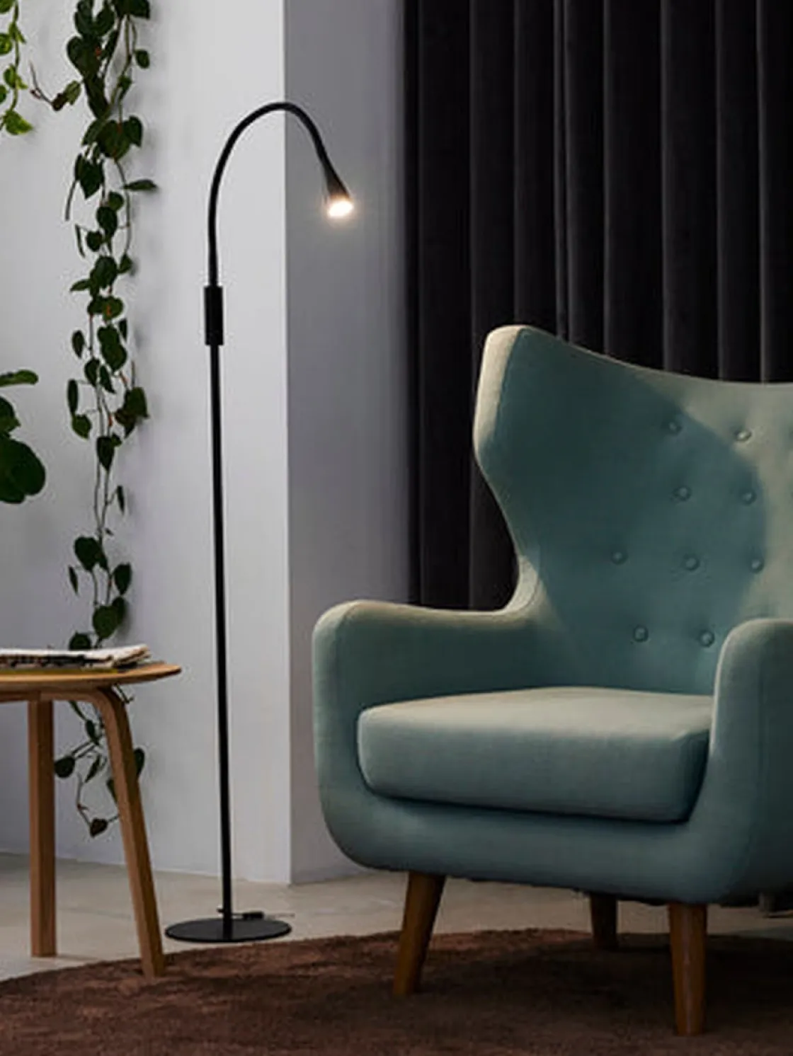 Twist er en fleksibel gulvlampe som passer perfekt som leselampe. Lampen kan dimmes i 3-steg og finnes i fargene hvit eller svart.