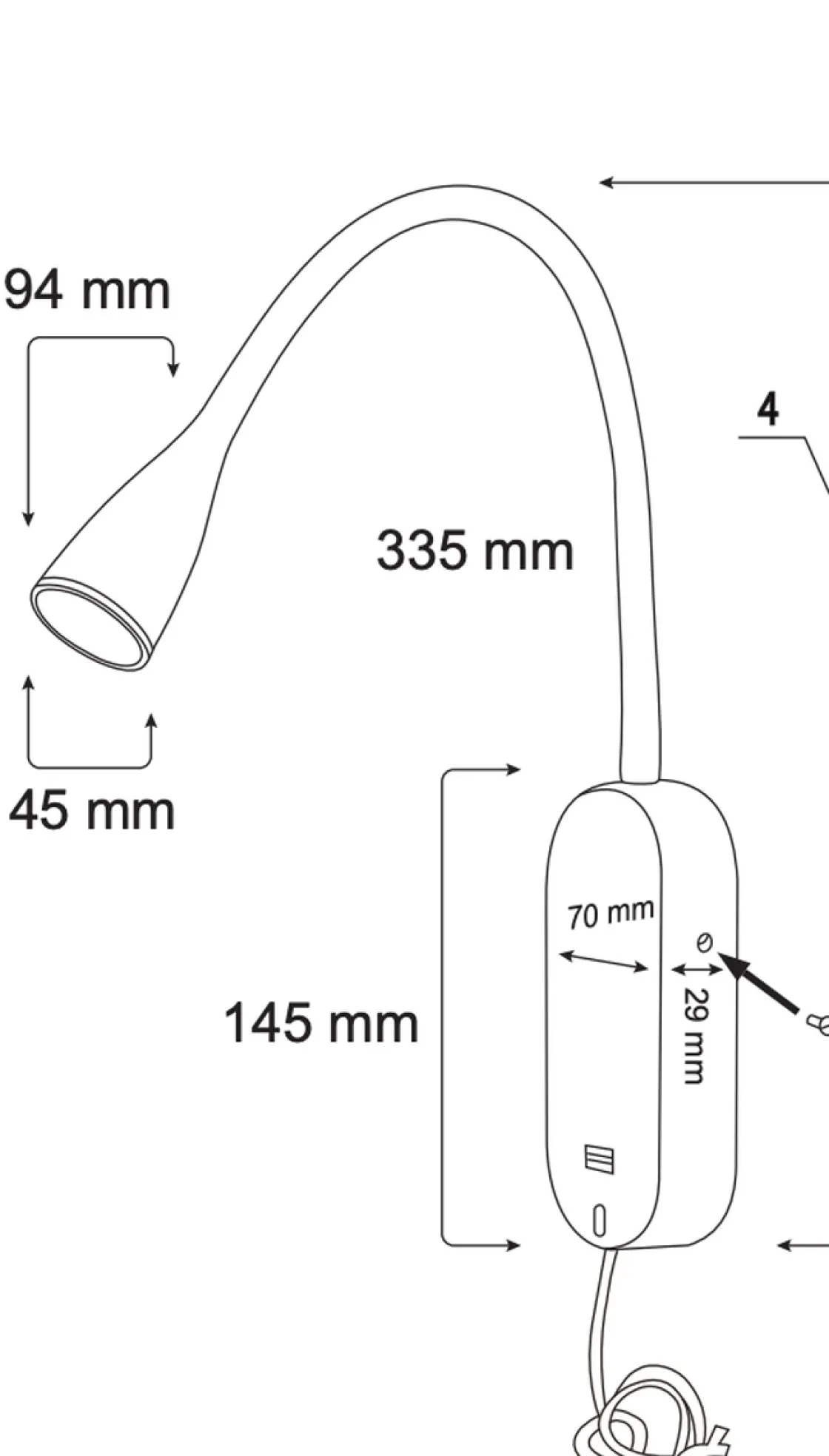 Eye er en vegglampe med fleksibel hals, slik at du kan selv velge retningen for lyset.