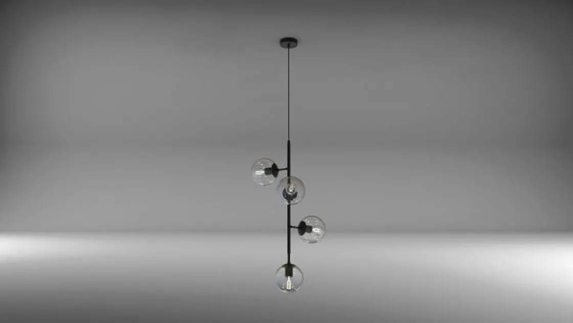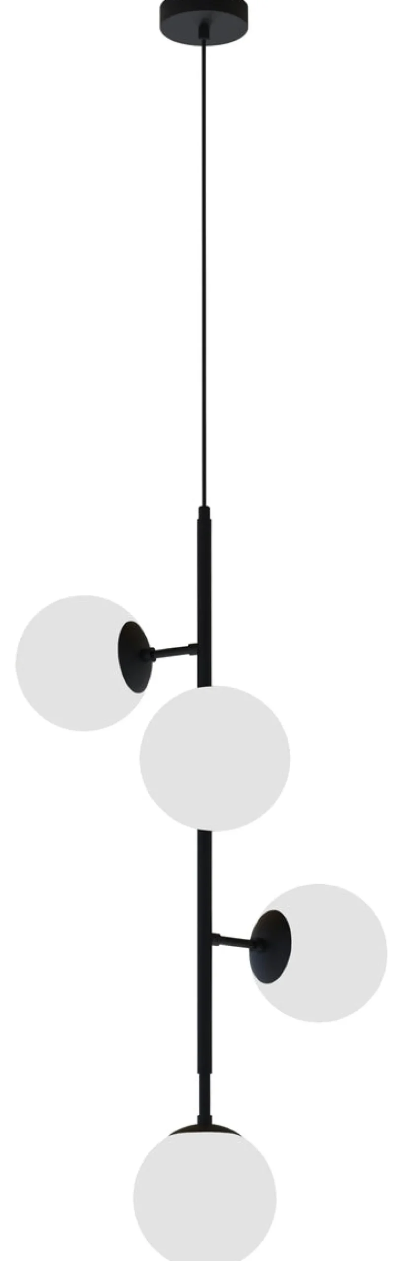 Emrik Vertical Pendant er en elegant glasspendel i langstrakt design som passer perfekt i trappoppgang. Den kommer i fargen sort, hvor man kan velge mellom fire forskjellige glass – clear, amber, smoke og white. Avbildet her med white glass.