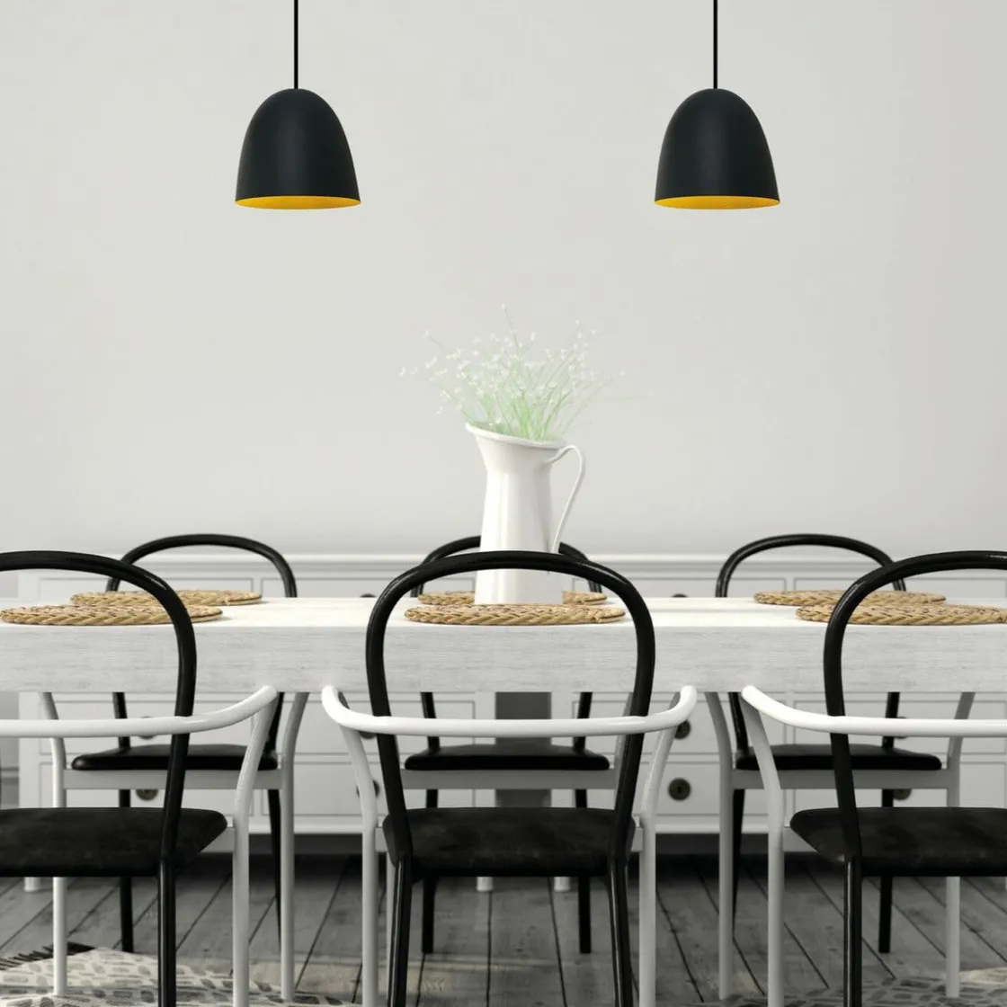 Innsiden er lakkert i en forgylt gullfarge, som lyses elegant opp og skaper et blikkfang i rommet. Ledningen er på hele 3m, som enkelt kan tilpasses etter eget ønske.