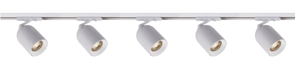 Komplett spotskinne 2 meter med 5 spotter, endestykke og tilkobling.