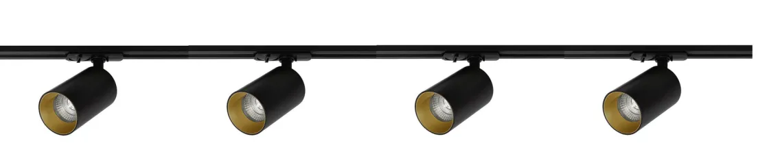 Komplett 2 meter spotskinne med 4 spotter. Lyspærer kjøpes separat med GU10 sokkel.