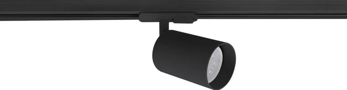 Komplett 1 meter spotskinne med 3 spotter. Lyspærer kjøpes separat med GU10 sokkel.