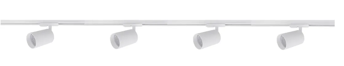 Komplett 2 meter spotskinne med 4 spotter samt endetilkobling i hvit farge. Du behøver 5 stk lyspærer med GU10-sokkel til spotskinnen. Velg gjerne noen dimbare lyspærer og koble skinnen til en dimmebryter f.eks. på veggen, slik at du kan justere lysstyrken ved behov.