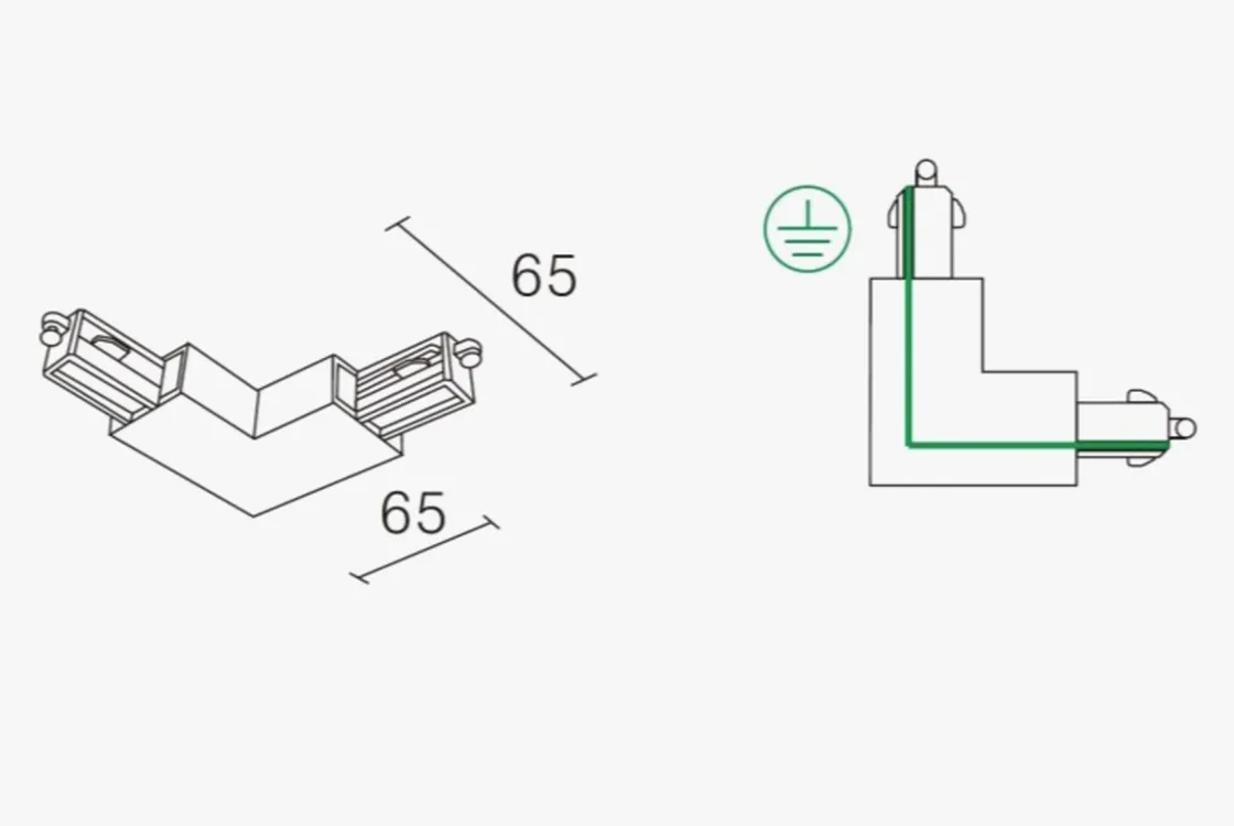 Vinkelskjøt som hører til Vox-skinnesystemet fra NorDesign.