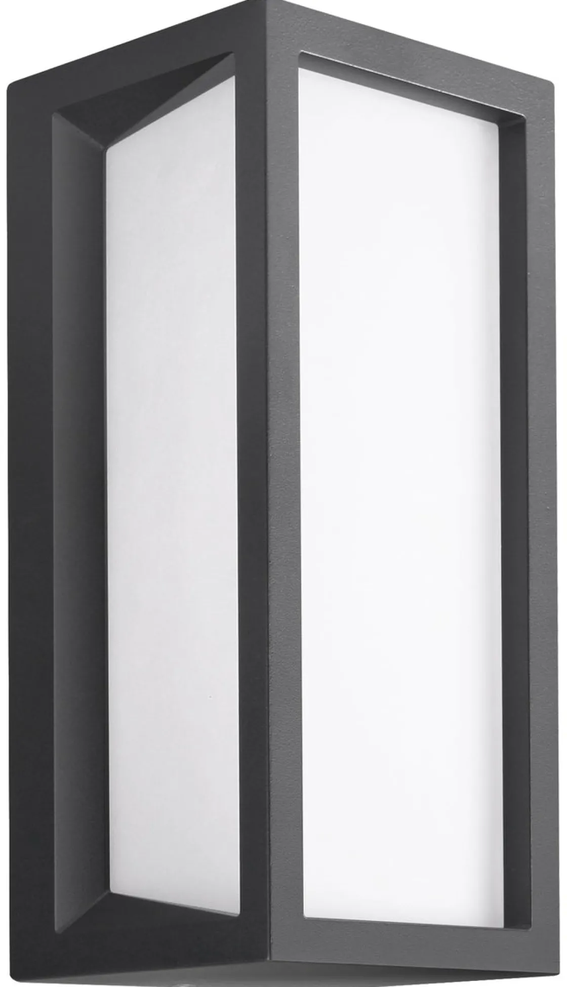 Stilren armatur med delikate linjer og et godt lysbilde. Armaturen sprer lyset i tre retninger og passer perfekt ved garasje og inngangsparti. Kan også benyttes som taklampe.