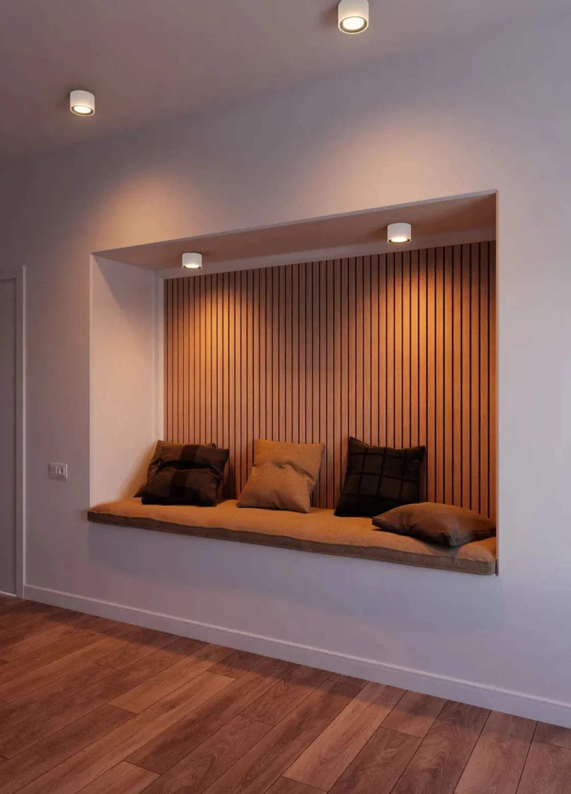 LED-spot til takmontering – med integrerte lysdioder og Moodmaker-funksjon med 4 trinn. Velg mellom 4 forskjellige lysinnstillinger med en vanlig lysbryter.